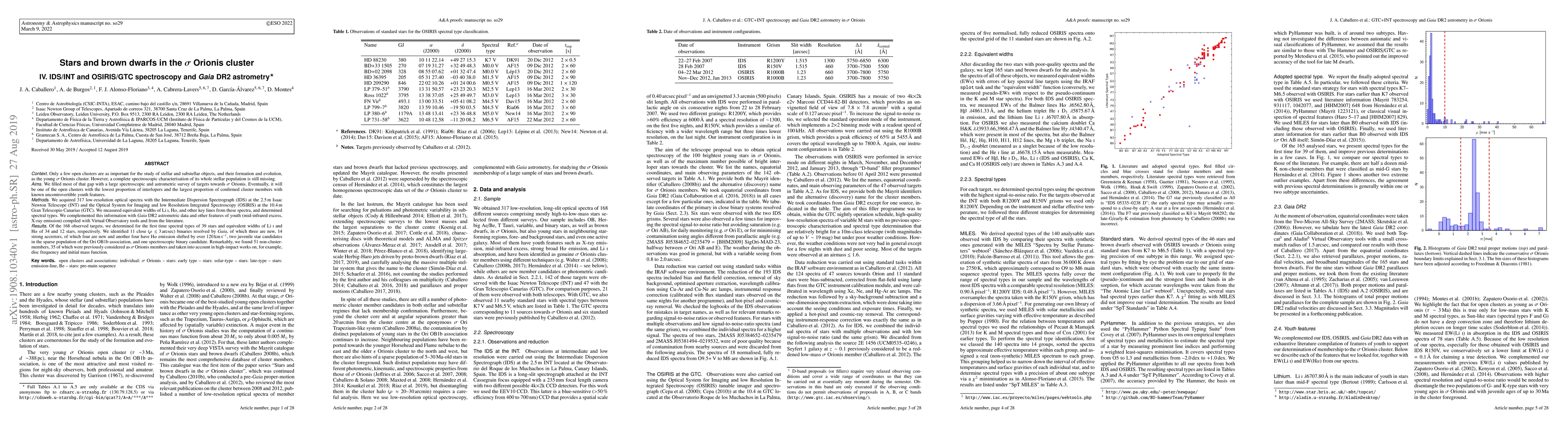 This study presents a comprehensive spectroscopic and astrometric survey of the sigma Orionis cluster, utilizing IDS/INT and OSIRIS/GTC spectra and Gaia DR2 data. The research identified spectral types for 39 stars, resolved 11 close binaries, and discovered 51 non-cluster members, correcting previous misclassifications.