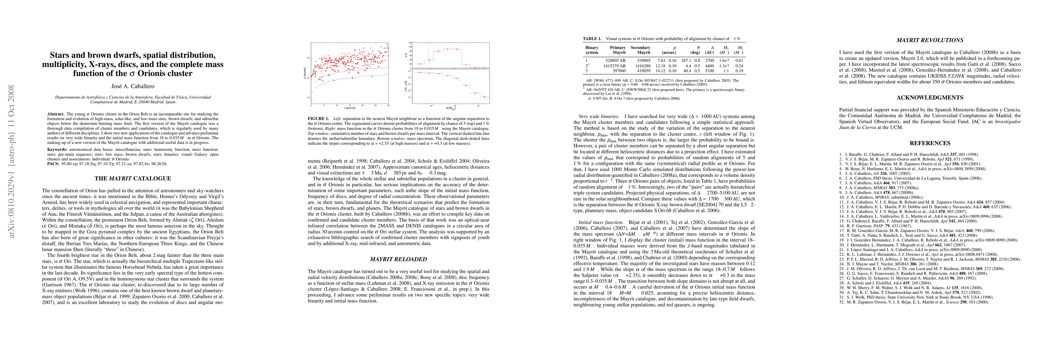 This paper investigates the spatial distribution, multiplicity, and characteristics of X-rays, discs, and the complete mass function of the young Sigma Orionis cluster, utilizing the Mayrit catalogue for comprehensive data analysis. Preliminary findings highlight the prevalence of very wide binarity and provide insights into the initial mass function ranging from high-mass stars to low-mass brown dwarfs.