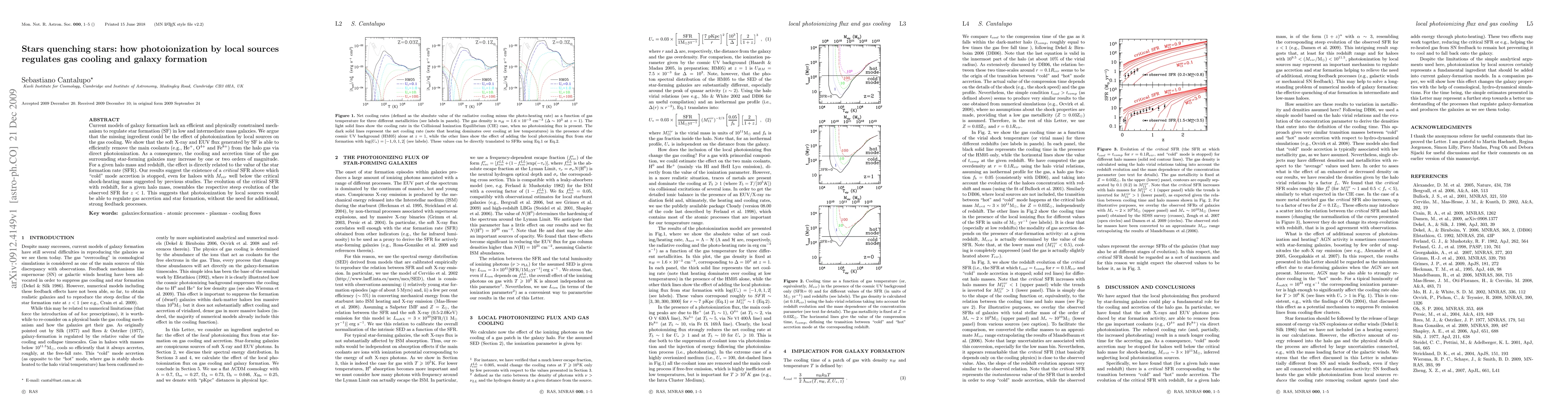 Current models of galaxy formation lack an efficient and physically constrained mechanism to regulate star formation (SF) in low and intermediate mass galaxies. We argue that the missing ingredient could be the effect of photoionization by local sources on the gas cooling. We show that the soft X-ray and EUV flux generated by SF is able to efficiently remove the main coolants (e.g., HeII, OV and FeIX) from the halo gas via direct photoionization. As a consequence, the cooling and accretion time of the gas surrounding star-forming galaxies may increase by one or two orders of magnitude. For a given halo mass and redshift, the effect is directly related to the value of the star formation rate (SFR). Our results suggest the existence of a critical SFR above which "cold" mode accretion is stopped, even for haloes with virial masses well below the critical shock-heating mass suggested by previous studies.The evolution of the critical SFR with redshift, for a given halo mass, resembles the respective steep evolution of the observed SFR for z<1. This suggests that photoionization by local sources would be able to regulate gas accretion and star formation, without the need for additional, strong feedback processes.