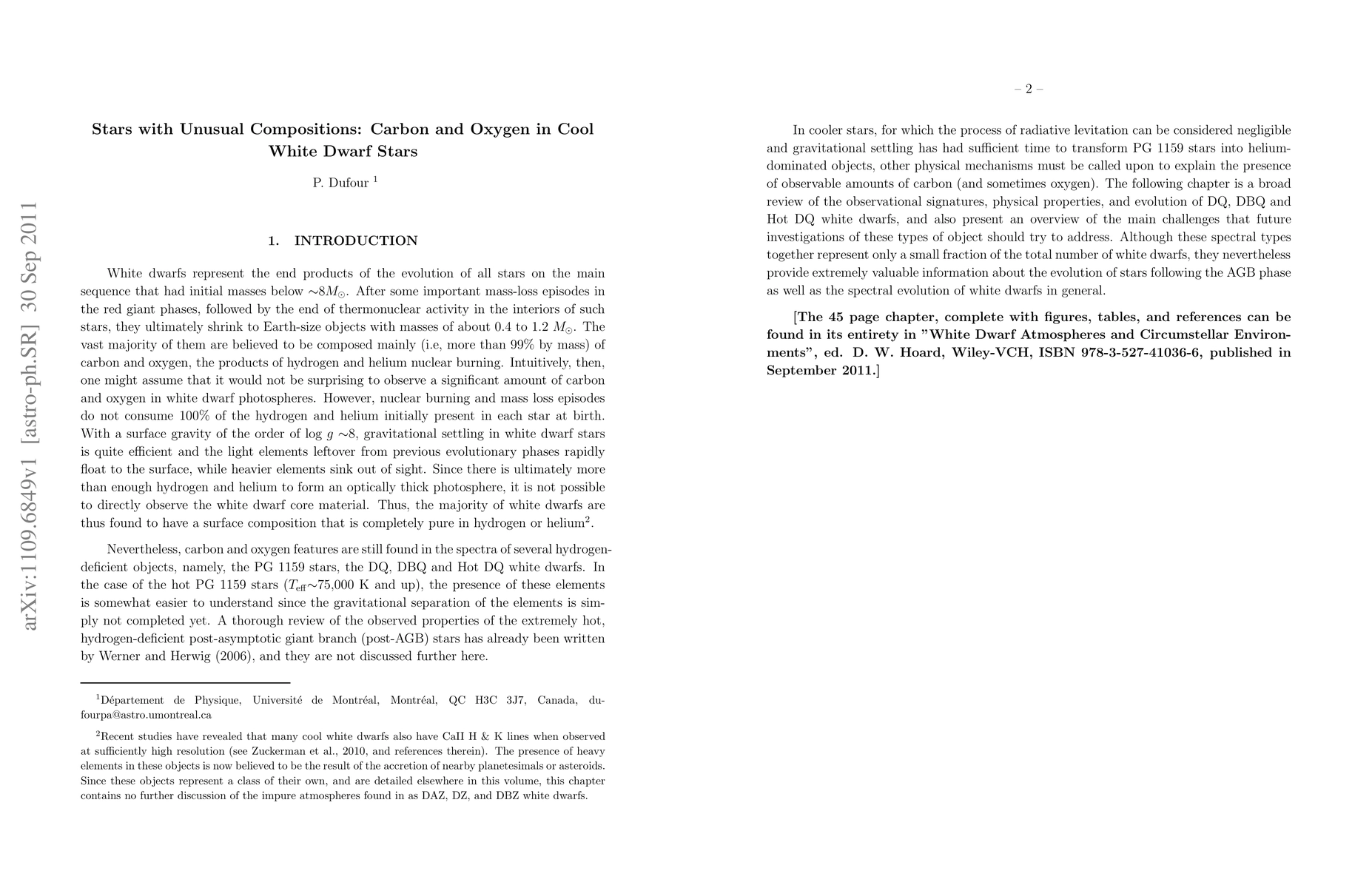 This paper reviews cool white dwarf stars with unusual compositions, focusing on carbon and oxygen detection in DQ, DBQ, and Hot DQ types, discussing their observational signatures, physical properties, and evolutionary paths, and highlighting key challenges for future research.