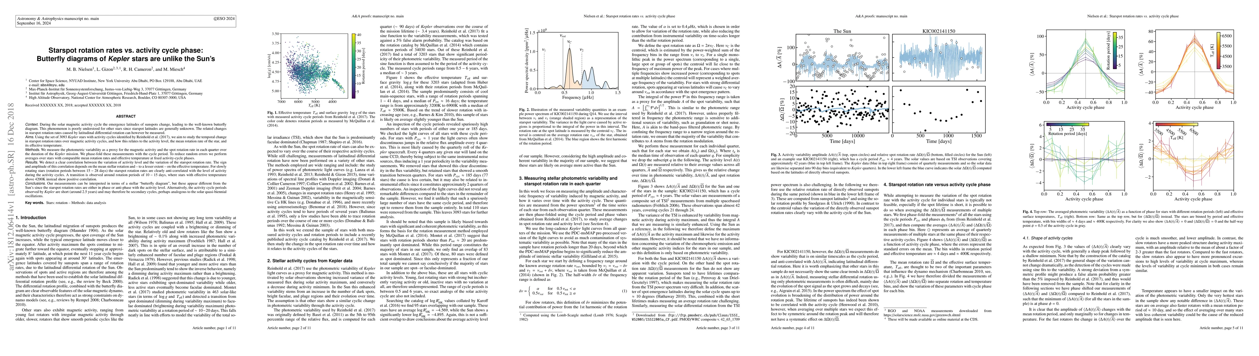 This study investigates the rotation rates of starspots on 3093 Kepler stars over their magnetic activity cycles, finding that starspot rotation rates vary in anti-phase with activity levels for slow rotators, while fast rotators show a positive correlation. The results suggest a stellar "butterfly diagram" differing from the Sun's, potentially due to secondary cycles.
