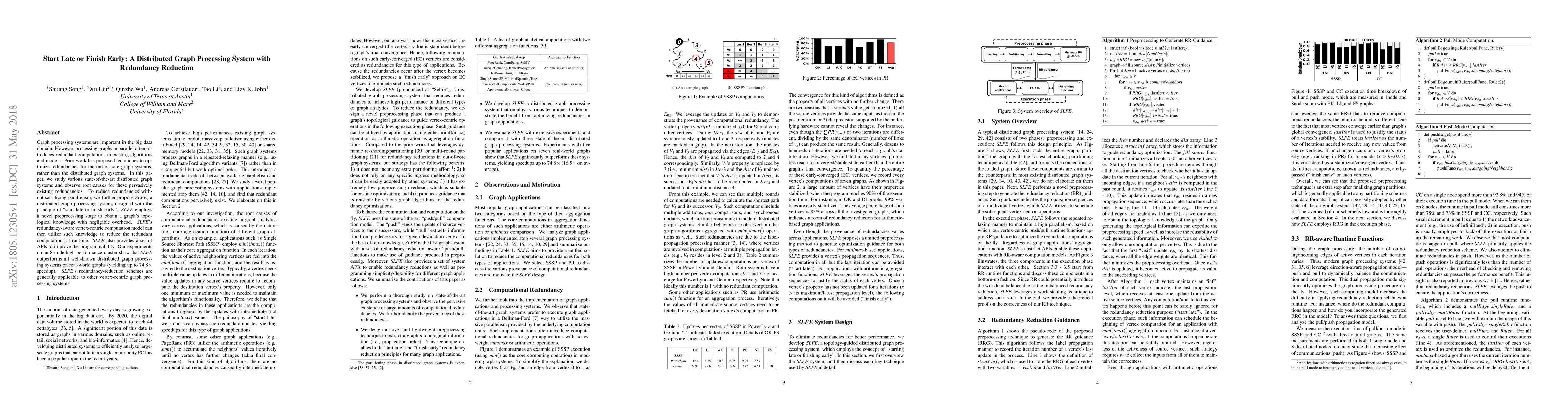 This paper introduces SLFE, a distributed graph processing system designed to minimize redundant computations through a "start late or finish early" principle. It employs a preprocessing stage to gather topological knowledge and a redundancy-aware computation model, achieving up to 74.8x speedup over other systems on real-world graphs.