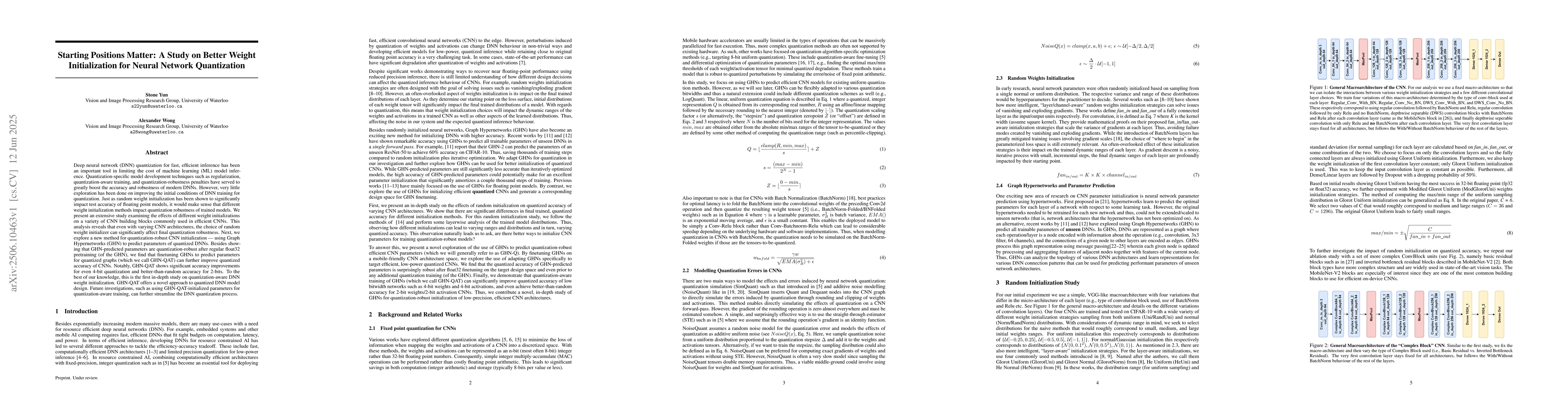 Deep neural network (DNN) quantization for fast, efficient inference has been an important tool in limiting the cost of machine learning (ML) model inference. Quantization-specific model development techniques such as regularization, quantization-aware training, and quantization-robustness penalties have served to greatly boost the accuracy and robustness of modern DNNs. However, very little exploration has been done on improving the initial conditions of DNN training for quantization. Just as random weight initialization has been shown to significantly impact test accuracy of floating point models, it would make sense that different weight initialization methods impact quantization robustness of trained models. We present an extensive study examining the effects of different weight initializations on a variety of CNN building blocks commonly used in efficient CNNs. This analysis reveals that even with varying CNN architectures, the choice of random weight initializer can significantly affect final quantization robustness. Next, we explore a new method for quantization-robust CNN initialization -- using Graph Hypernetworks (GHN) to predict parameters of quantized DNNs. Besides showing that GHN-predicted parameters are quantization-robust after regular float32 pretraining (of the GHN), we find that finetuning GHNs to predict parameters for quantized graphs (which we call GHN-QAT) can further improve quantized accuracy of CNNs. Notably, GHN-QAT shows significant accuracy improvements for even 4-bit quantization and better-than-random accuracy for 2-bits. To the best of our knowledge, this is the first in-depth study on quantization-aware DNN weight initialization. GHN-QAT offers a novel approach to quantized DNN model design. Future investigations, such as using GHN-QAT-initialized parameters for quantization-aware training, can further streamline the DNN quantization process.