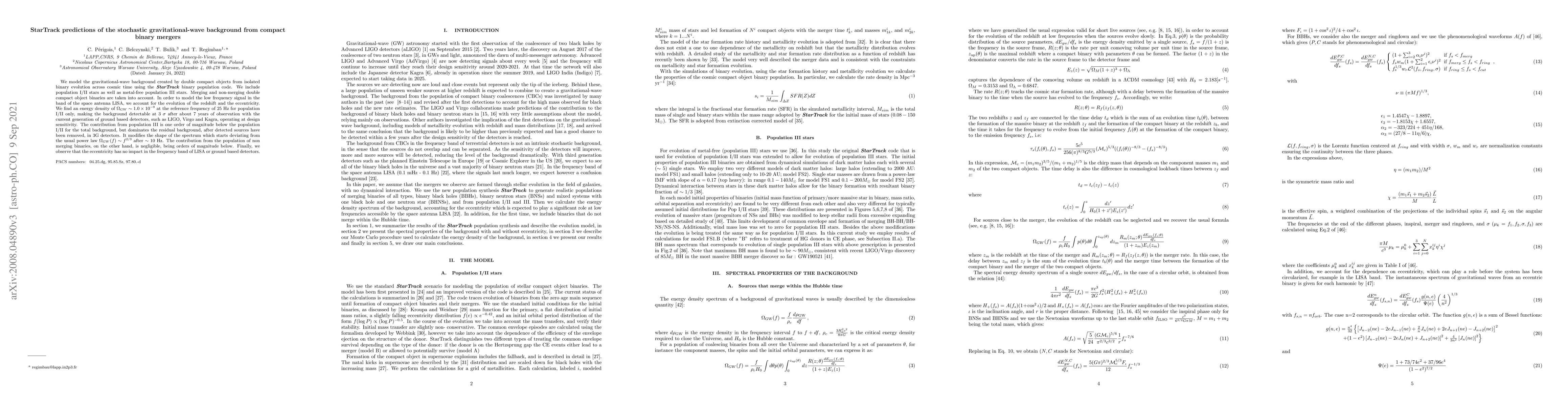 This paper models the stochastic gravitational-wave background from compact binary mergers using the StarTrack binary population code, considering various stellar populations. It predicts an energy density detectable at 3σ after 7 years with current ground-based detectors, with population III stars contributing significantly to the residual background in future 3G detectors.