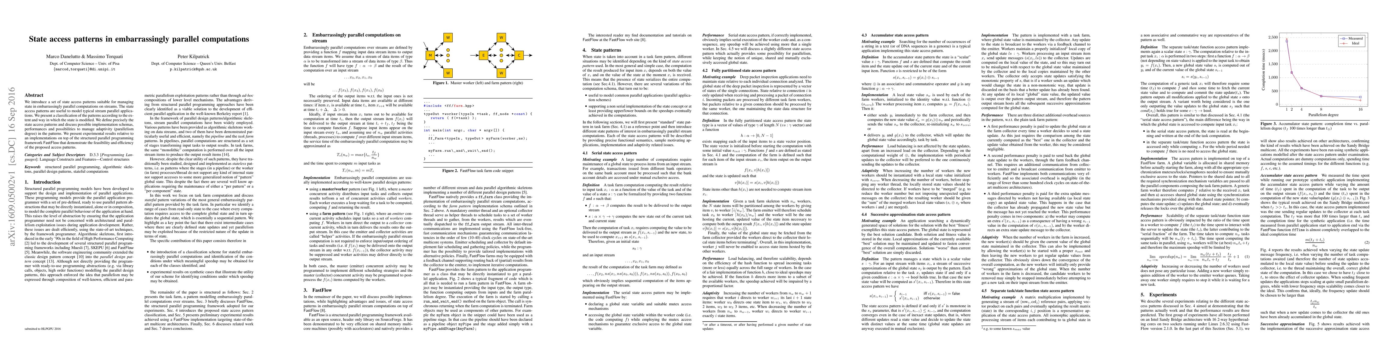 This paper introduces state access patterns for managing state in embarrassingly parallel stream computations, classifying them based on modification extent and implementation strategies. Experimental results using the FastFlow framework show the feasibility and efficiency of these patterns.