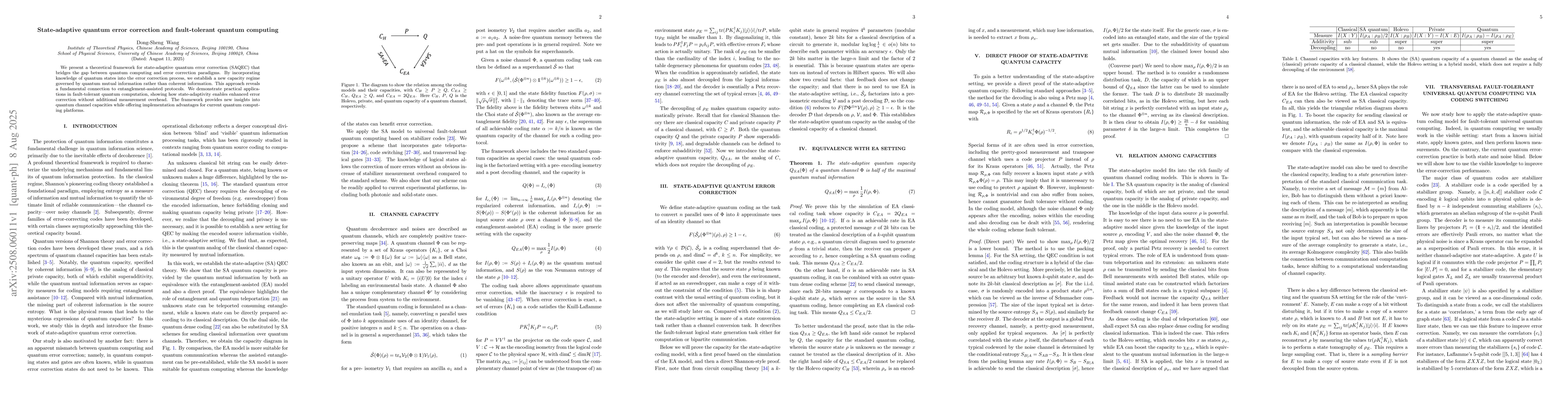 The paper presents a theoretical framework for state-adaptive quantum error correction (SAQEC) using quantum mutual information, bridging the gap between quantum computing and error correction paradigms.
