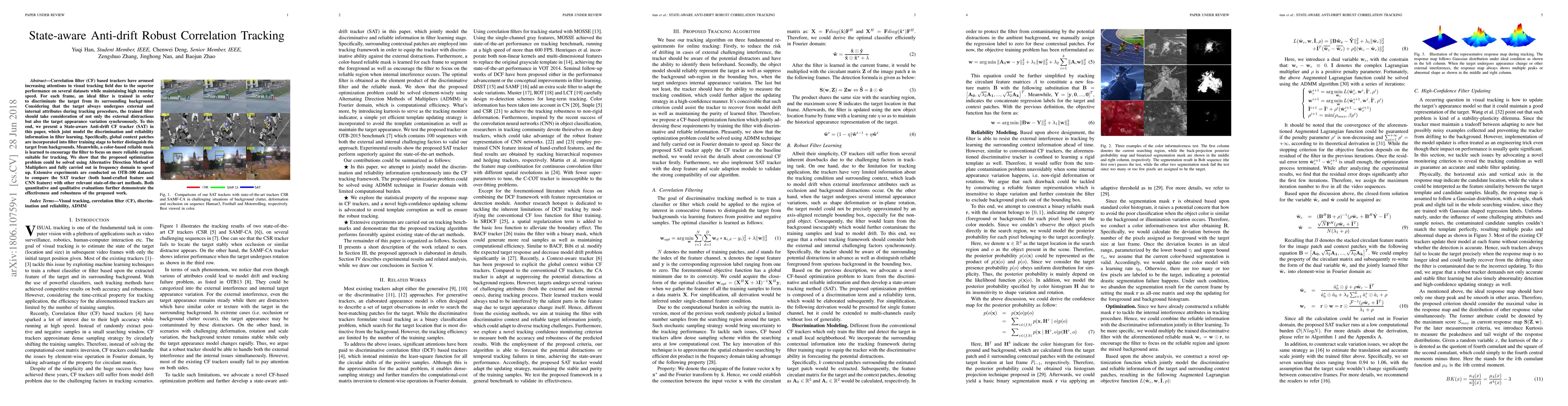 Correlation filter (CF) based trackers have aroused increasing attentions in visual tracking field due to the superior performance on several datasets while maintaining high running speed. For each frame, an ideal filter is trained in order to discriminate the target from its surrounding background. Considering that the target always undergoes external and internal interference during tracking procedure, the trained filter should take consideration of not only the external distractions but also the target appearance variation synchronously. To this end, we present a State-aware Anti-drift Tracker (SAT) in this paper, which jointly model the discrimination and reliability information in filter learning. Specifically, global context patches are incorporated into filter training stage to better distinguish the target from backgrounds. Meanwhile, a color-based reliable mask is learned to encourage the filter to focus on more reliable regions suitable for tracking. We show that the proposed optimization problem could be efficiently solved using Alternative Direction Method of Multipliers and fully carried out in Fourier domain. Extensive experiments are conducted on OTB-100 datasets to compare the SAT tracker (both hand-crafted feature and CNN feature) with other relevant state-of-the-art methods. Both quantitative and qualitative evaluations further demonstrate the effectiveness and robustness of the proposed work.
