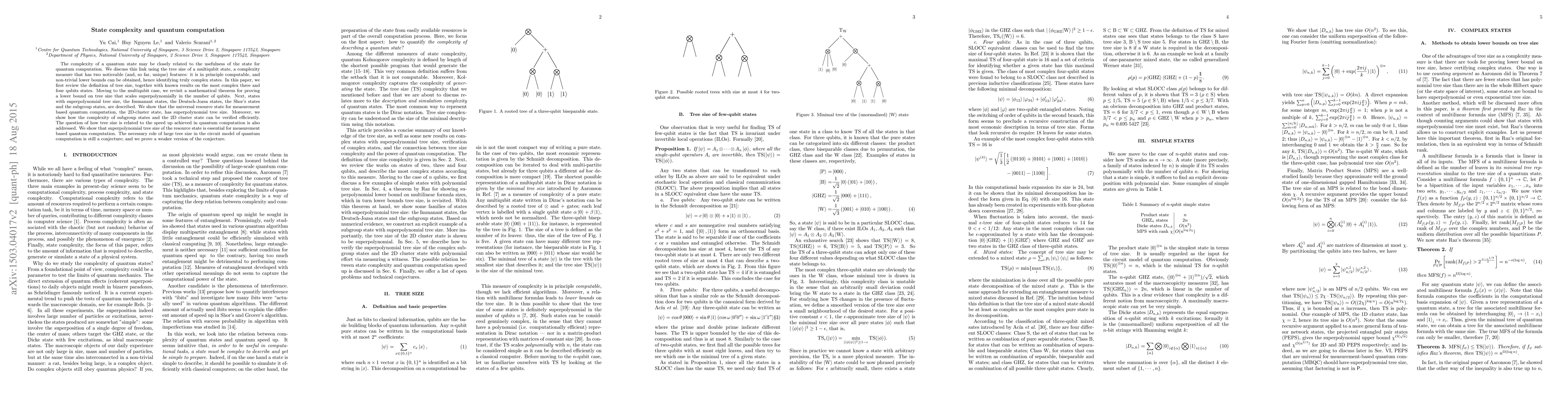 This paper explores the relationship between the complexity of quantum states, measured by tree size, and their utility in quantum computation. It reviews the definition and computational aspects of tree size, identifies complex multiqubit states, and demonstrates that states with superpolynomial tree size, such as the 2D-cluster state, are crucial for quantum computation, particularly in the measurement-based model.
