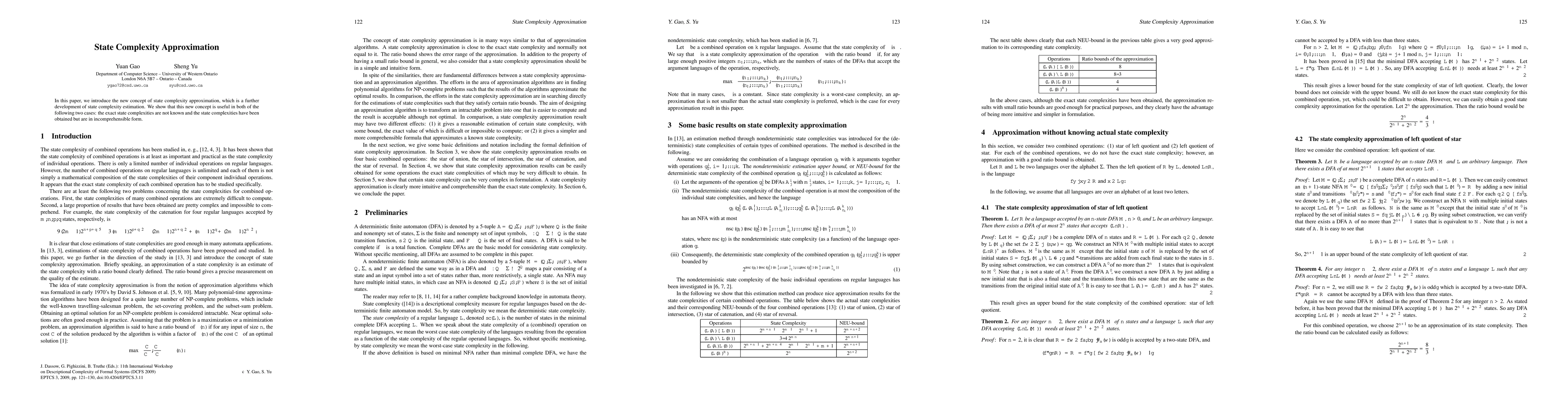 Researchers introduce a new concept called state complexity approximation to handle unknown or incomprehensible state complexities in systems, offering a practical solution for estimating these complexities.