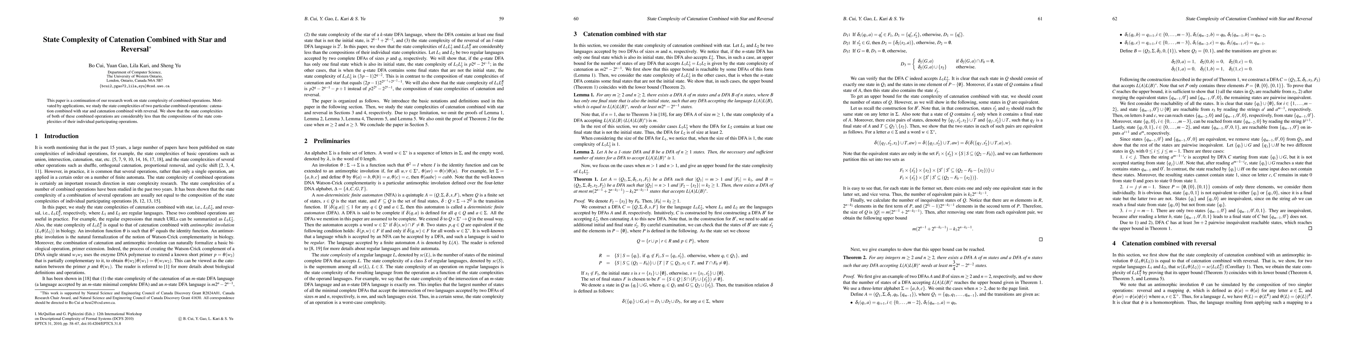 This paper investigates the state complexities of catenation combined with star and catenation combined with reversal. It demonstrates that the combined operations require significantly fewer states than the sum of their individual complexities.