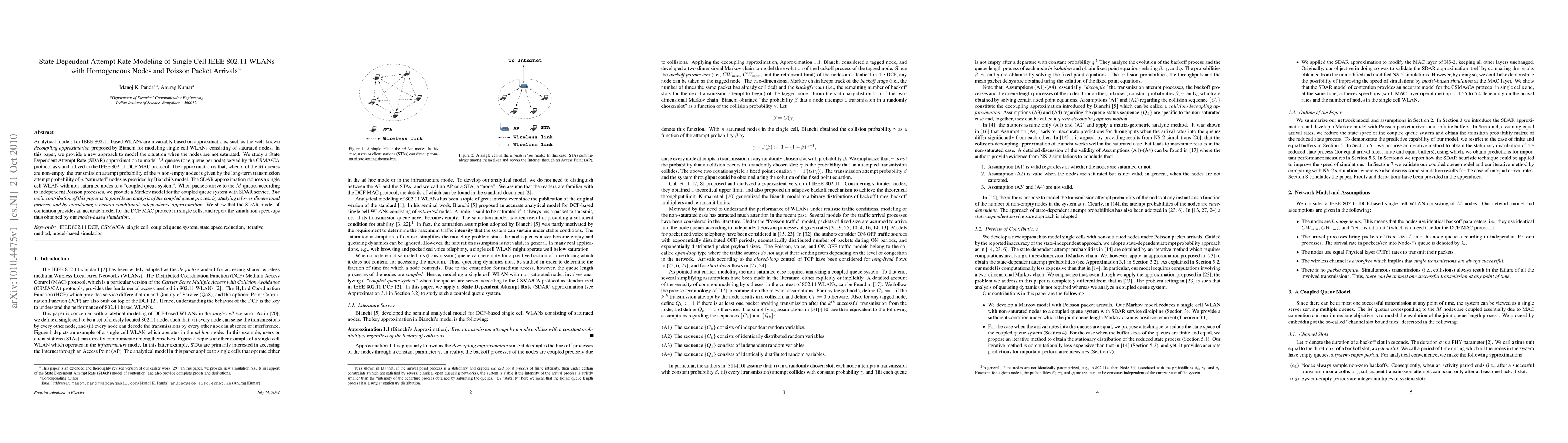 This paper introduces a State Dependent Attempt Rate (SDAR) model to analyze non-saturated nodes in single cell IEEE 802.11 WLANs, contrasting with Bianchi's decoupling approximation. The SDAR model transforms the system into a coupled queue system, providing a Markov model for Poisson-arriving packets and demonstrating its accuracy through model-based simulation.