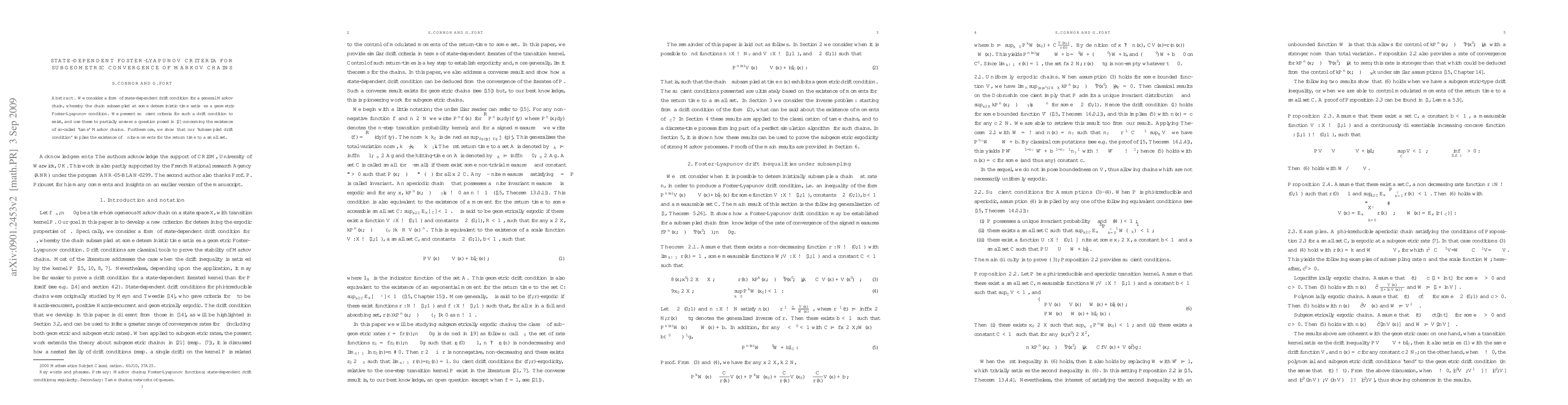 This paper establishes state-dependent Foster-Lyapunov criteria for subgeometric convergence of Markov chains, presenting sufficient conditions for a geometric drift condition under subsampling. It also addresses the existence of 'tame' Markov chains and demonstrates that the proposed drift condition ensures finite moments for return times to a small set.