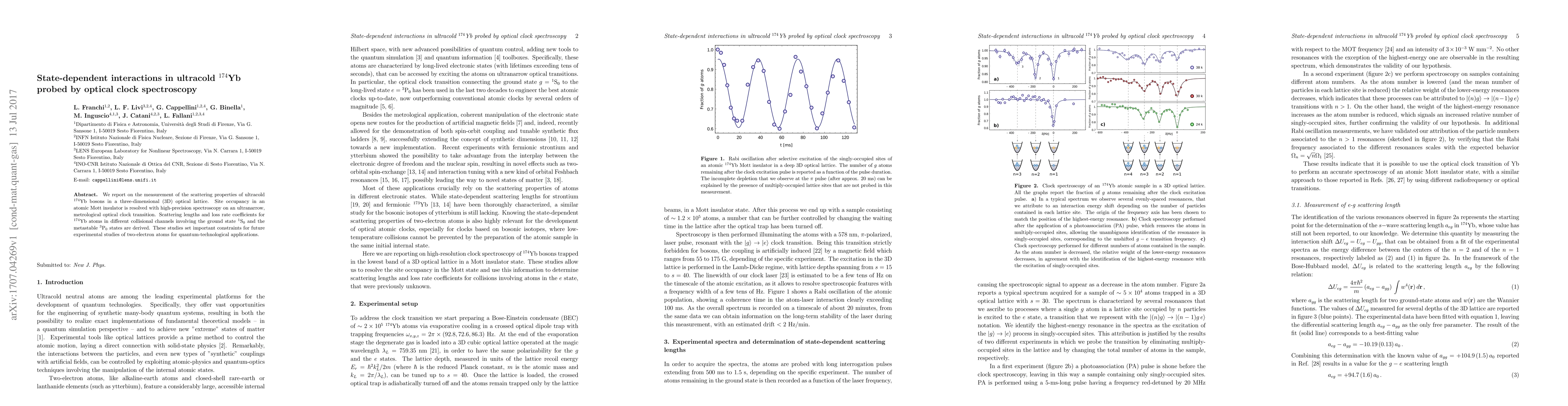 This paper measures scattering properties of ultracold $^{174}$Yb bosons in a 3D optical lattice using high-precision optical clock spectroscopy, determining scattering lengths and loss rates for different collisional channels. These findings provide crucial constraints for future quantum-technological applications involving two-electron atoms.