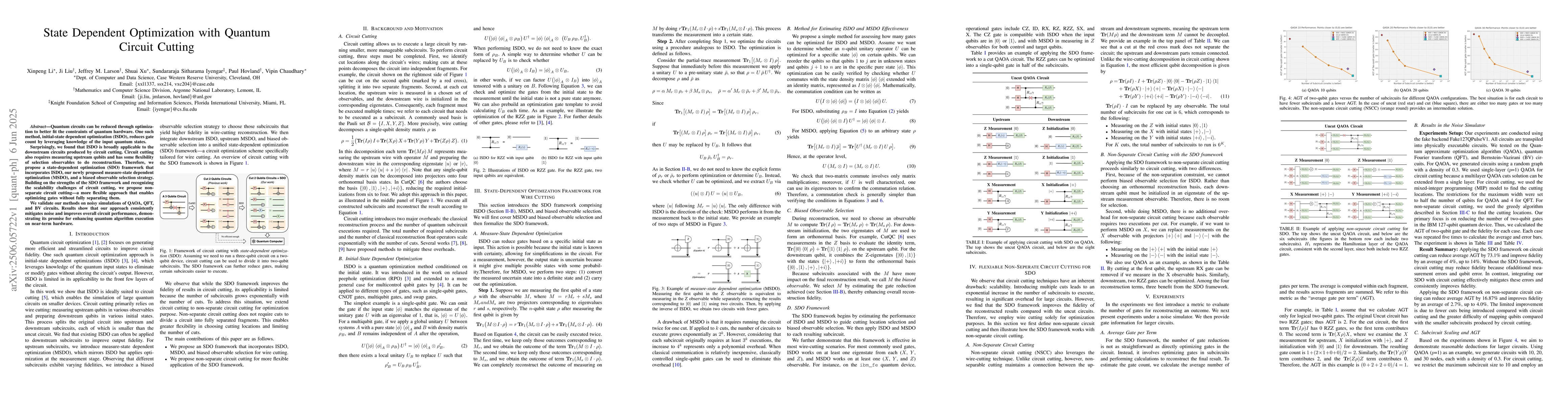 The introduction of a state-dependent optimization framework for wire cutting in quantum computing.