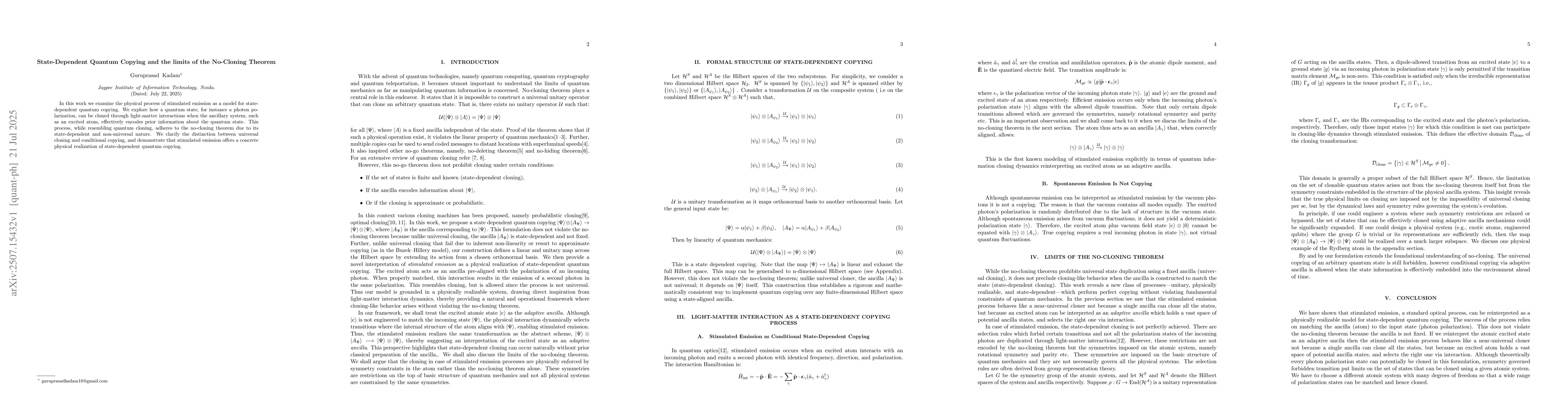 This work extends the foundational understanding of no-cloning and demonstrates state-dependent quantum copying without violating fundamental constraints of quantum mechanics