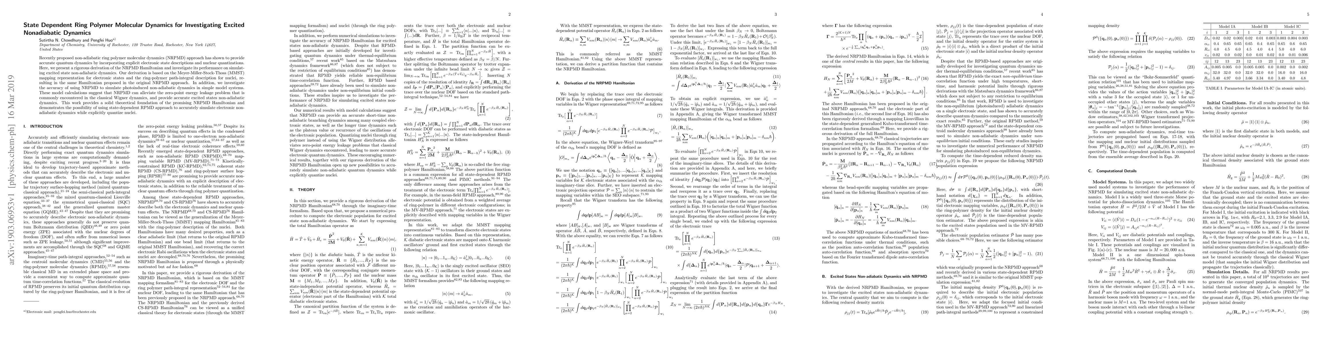 Recently proposed non-adiabatic ring polymer molecular dynamics (NRPMD) approach has shown to provide accurate quantum dynamics by incorporating explicit electronic state descriptions and nuclear quantizations. Here, we present a rigorous derivation of the NRPMD Hamiltonian and investigate its performance on simulating excited state non-adiabatic dynamics. Our derivation is based on the Meyer-Miller-Stock-Thoss (MMST) mapping representation for electronic states and the ring-polymer path-integral description for nuclei, resulting in the same Hamiltonian proposed in the original NRPMD approach. In addition, we investigate the accuracy of using NRPMD to simulate photoinduced non-adiabatic dynamics in simple model systems. These model calculations suggest that NRPMD can alleviate the zero-point energy leakage problem that is commonly encountered in the classical Wigner dynamics, and provide accurate excited states non-adiabatic dynamics. This work provides a solid theoretical foundation of the promising NRPMD Hamiltonian and demonstrates the possibility of using state-dependent RPMD approach to accurately simulate electronic non-adiabatic dynamics while explicitly quantize nuclei.