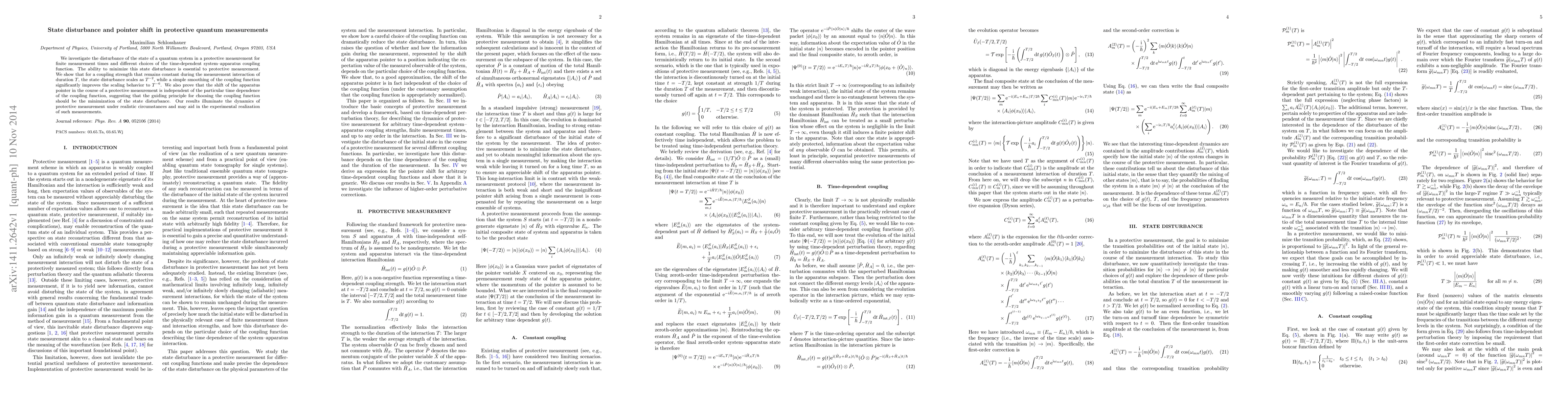 This research paper investigates how to minimize state disturbance in protective quantum measurements, finding that a smoothing of the coupling function improves the scaling behavior from T^{-2} to T^{-6}. The findings may aid in the experimental realization of such measurements.