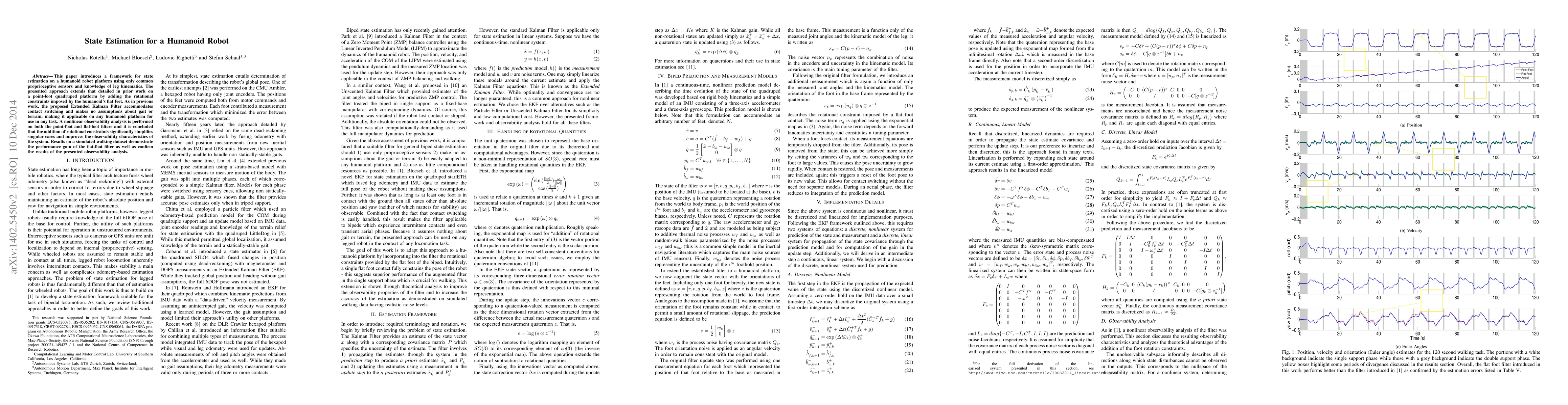 A new framework for state estimation on humanoid robots uses common sensors and leg kinematics to accurately track robot movement without assuming specific gait or terrain. The approach improves observability characteristics and performance in simulated walking and squatting tasks.