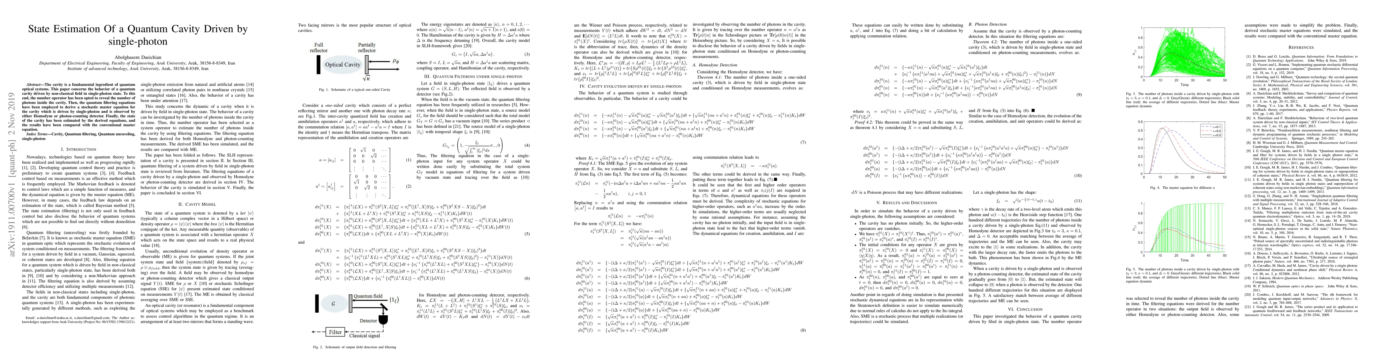 The cavity is a fundamental ingredient of quantum optical systems. This paper concerns the behavior of a quantum cavity driven by non-classical field in single-photon state. To this end, the number operator has been opted to reveal the number of photons inside the cavity. Then, the quantum filtering equations have been employed to derive a stochastic master equation for the cavity which is driven by single-photon and is observed by either Homodyne or photon-counting detector. Finally, the state of the cavity has been estimated by the derived equations, and the results have been compared with the conventional master equation.