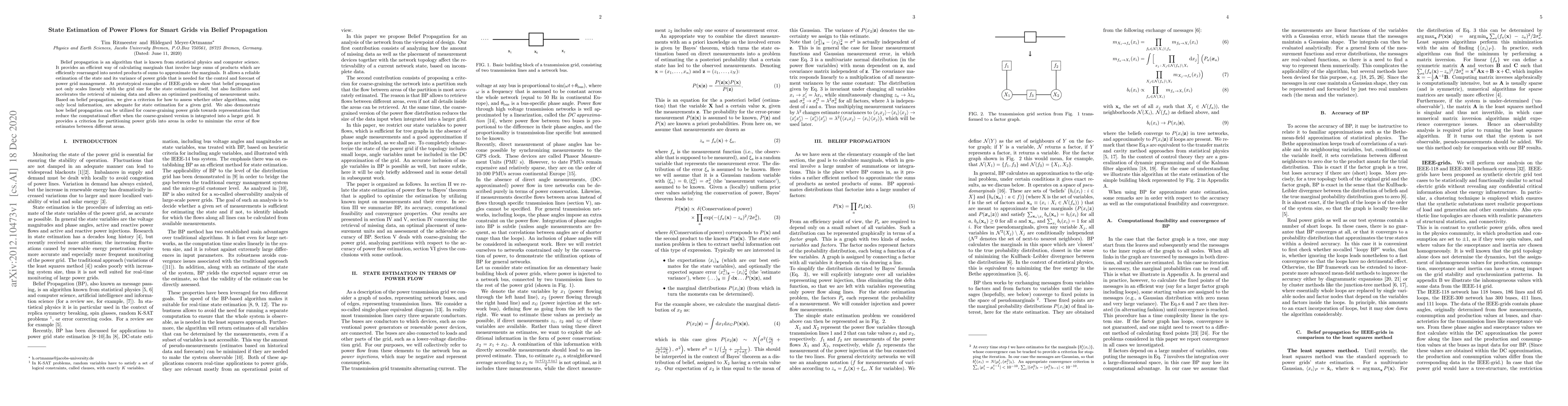 Belief propagation is an algorithm that is known from statistical physics and computer science. It provides an efficient way of calculating marginals that involve large sums of products which are efficiently rearranged into nested products of sums to approximate the marginals. It allows a reliable estimation of the state and its variance of power grids that is needed for the control and forecast of power grid management. At prototypical examples of IEEE-grids we show that belief propagation not only scales linearly with the grid size for the state estimation itself, but also facilitates and accelerates the retrieval of missing data and allows an optimized positioning of measurement units. Based on belief propagation, we give a criterion for how to assess whether other algorithms, using only local information, are adequate for state estimation for a given grid. We also demonstrate how belief propagation can be utilized for coarse-graining power grids towards representations that reduce the computational effort when the coarse-grained version is integrated into a larger grid. It provides a criterion for partitioning power grids into areas in order to minimize the error of flow estimates between different areas.