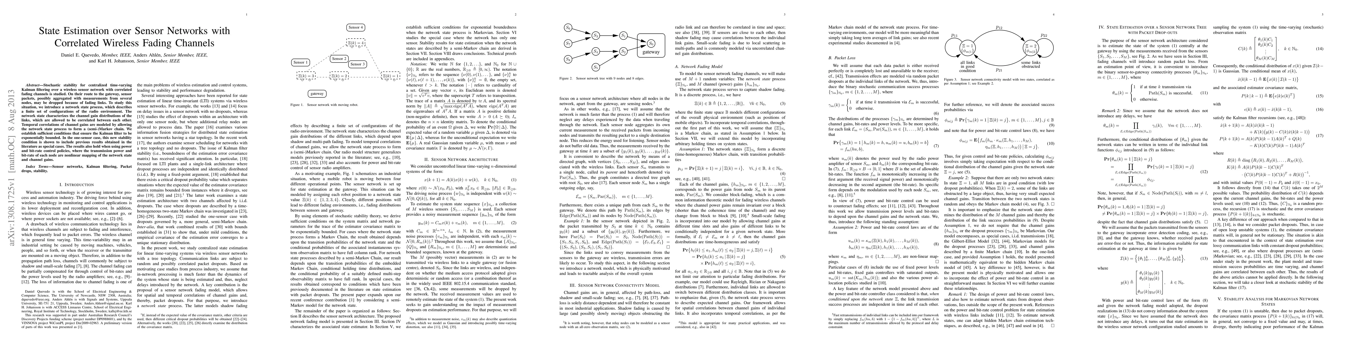 Stochastic stability for centralized time-varying Kalman filtering over a wireles ssensor network with correlated fading channels is studied. On their route to the gateway, sensor packets, possibly aggregated with measurements from several nodes, may be dropped because of fading links. To study this situation, we introduce a network state process, which describes a finite set of configurations of the radio environment. The network state characterizes the channel gain distributions of the links, which are allowed to be correlated between each other. Temporal correlations of channel gains are modeled by allowing the network state process to form a (semi-)Markov chain. We establish sufficient conditions that ensure the Kalman filter to be exponentially bounded. In the one-sensor case, this new stability condition is shown to include previous results obtained in the literature as special cases. The results also hold when using power and bit-rate control policies, where the transmission power and bit-rate of each node are nonlinear mapping of the network state and channel gains.