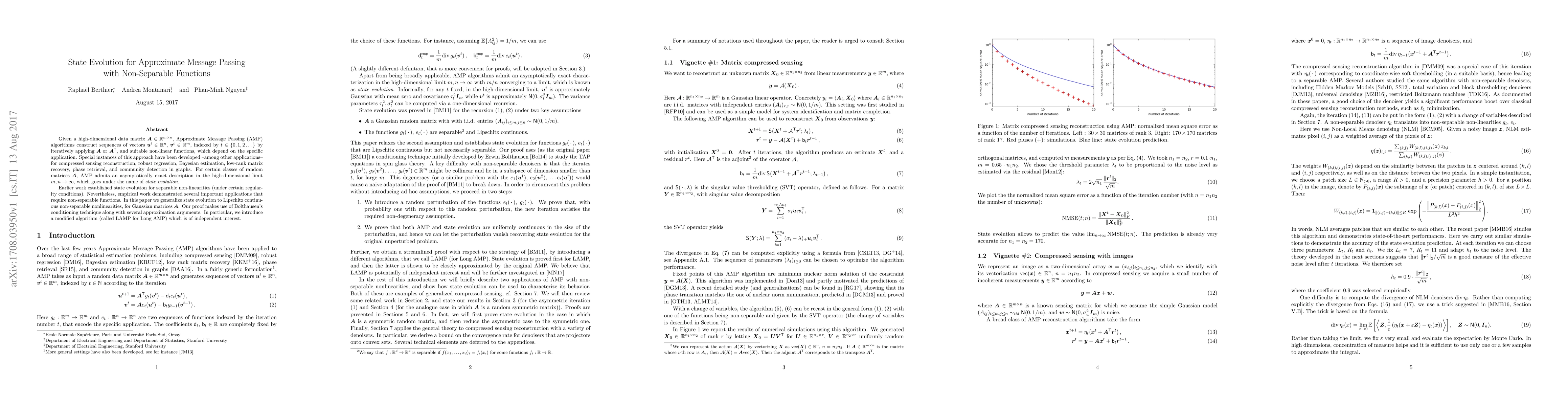 This paper generalizes state evolution for Approximate Message Passing (AMP) algorithms to handle Lipschitz continuous non-separable nonlinearities, particularly for Gaussian matrices. It introduces a modified AMP algorithm (LAMP) and uses Bolthausen's conditioning technique along with approximation arguments to achieve this.
