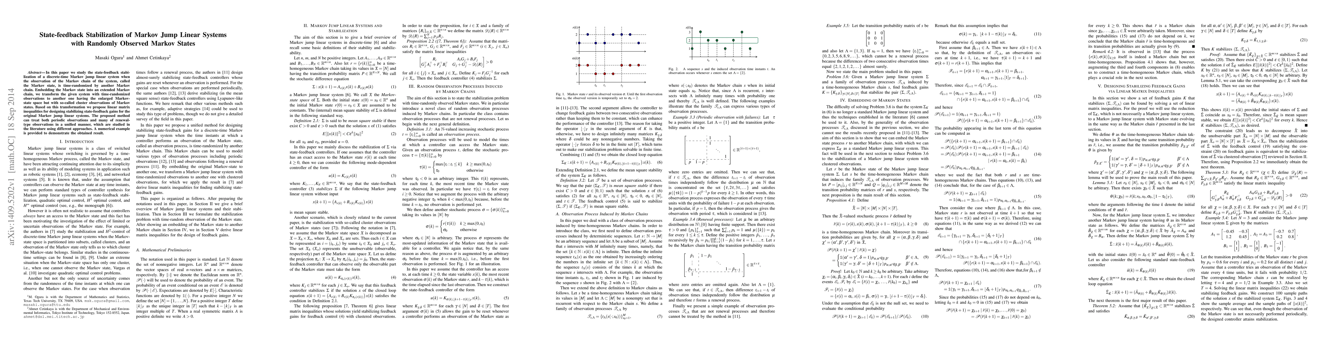 This paper proposes a method for stabilizing Markov jump linear systems with randomly observed Markov states by embedding the system into an extended Markov chain. It uses linear matrix inequalities to design stabilizing state-feedback gains, treating both periodic and renewal-type observations uniformly. A numerical example validates the effectiveness of the proposed approach.