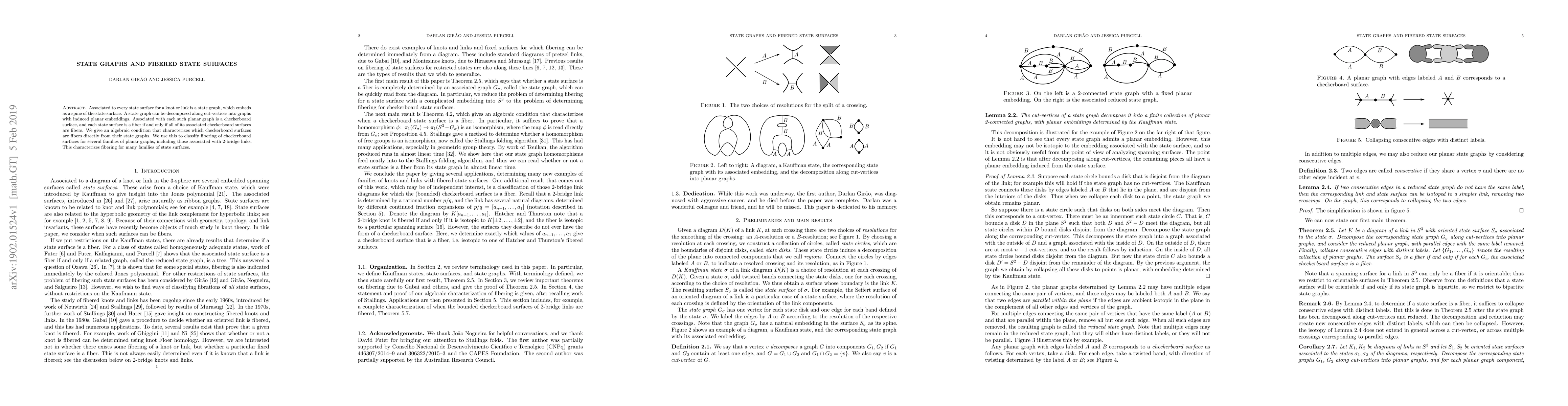 This paper explores the relationship between state graphs and fibered state surfaces for knots and links, providing an algebraic condition to determine which checkerboard surfaces derived from state graphs are fibered. It classifies the fibering of checkerboard surfaces for various families of planar graphs, including those linked to 2-bridge links.