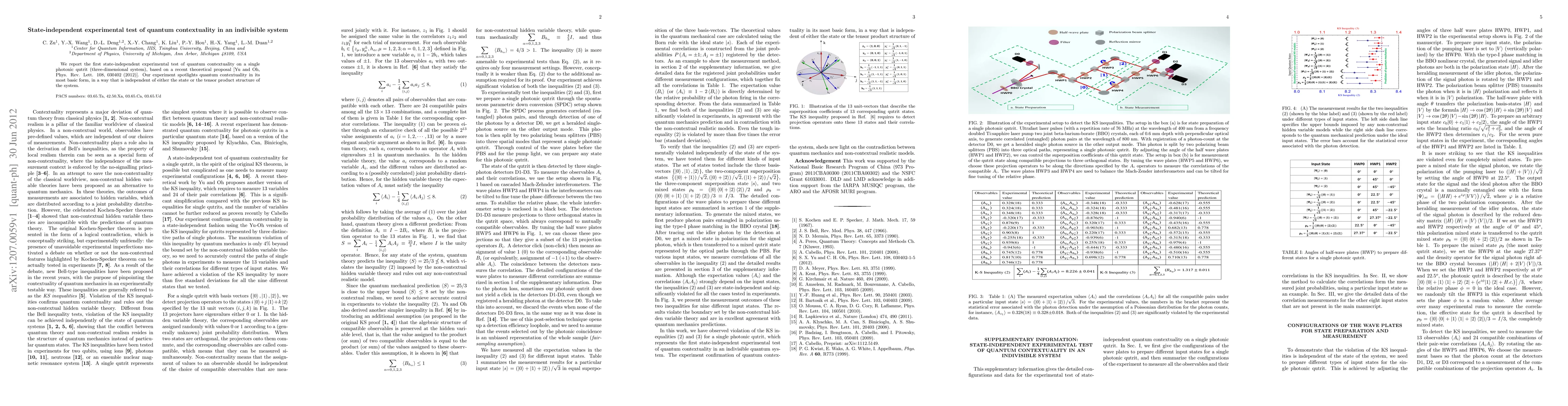 This research presents the first state-independent experimental verification of quantum contextuality using a single photonic qutrit, confirming fundamental quantum mechanics principles without reliance on the system's state or tensor product structure. The experiment follows a theoretical proposal by Yu and Oh (2012).