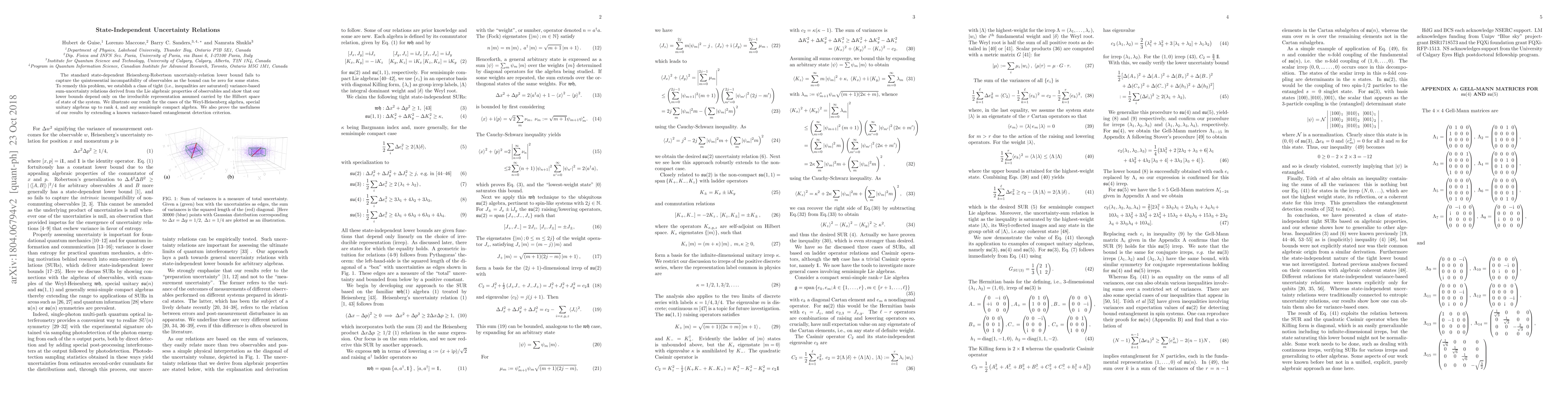 This paper establishes a new class of state-independent uncertainty relations that provide tighter bounds on the incompatibility of observables, independent of specific states. These variance-based sum-uncertainty relations are derived from the Lie algebraic properties of observables and are shown to be useful in extending a known variance-based entanglement detection criterion.