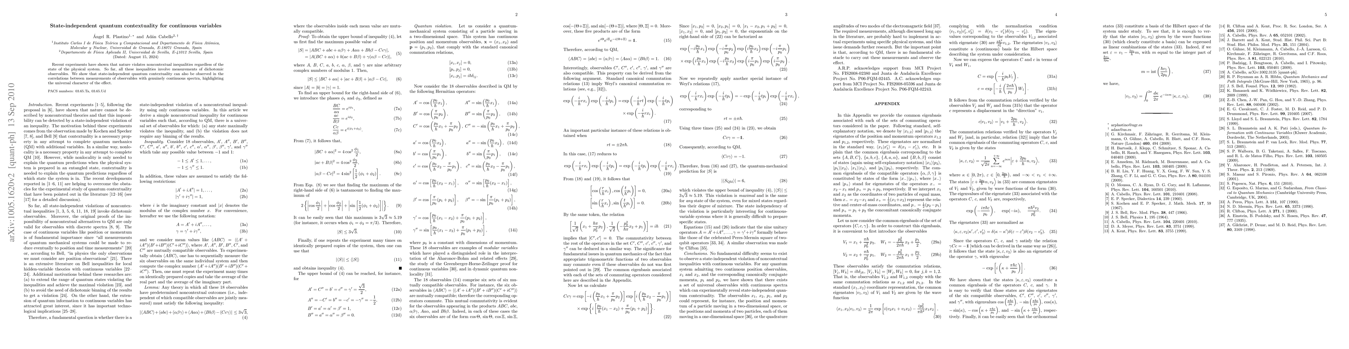 Summary: This paper demonstrates that quantum contextuality, previously observed in dichotomic observables, also applies to continuous variable systems, showing the universality of state-independent contextuality in quantum mechanics.