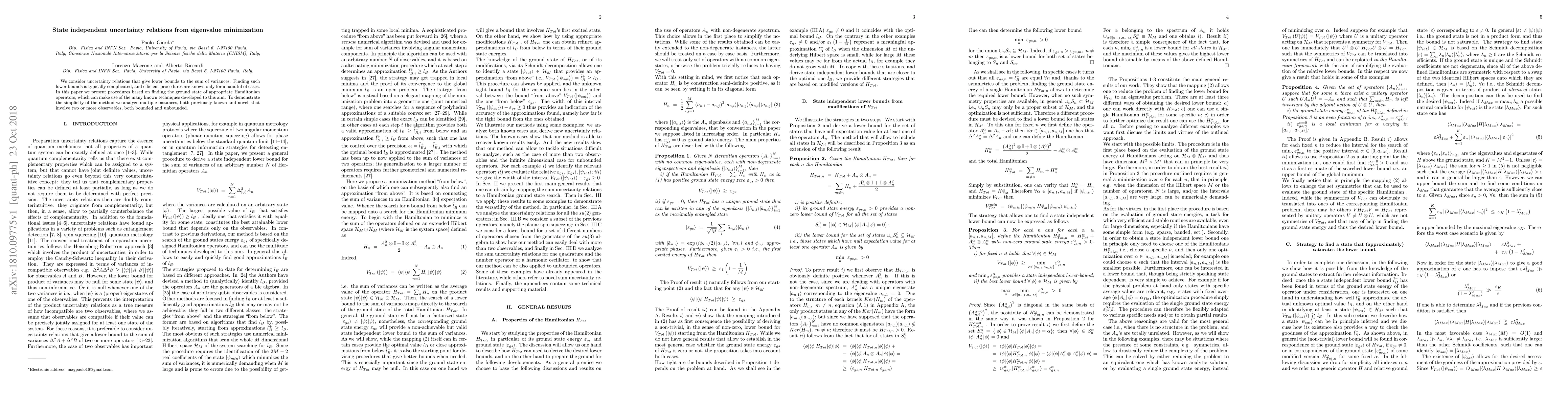 We consider uncertainty relations that give lower bounds to the sum of variances. Finding such lower bounds is typically complicated, and efficient procedures are known only for a handful of cases. In this paper we present procedures based on finding the ground state of appropriate Hamiltonian operators, which can make use of the many known techniques developed to this aim. To demonstrate the simplicity of the method we analyze multiple instances, both previously known and novel, that involve two or more observables, both bounded and unbounded.