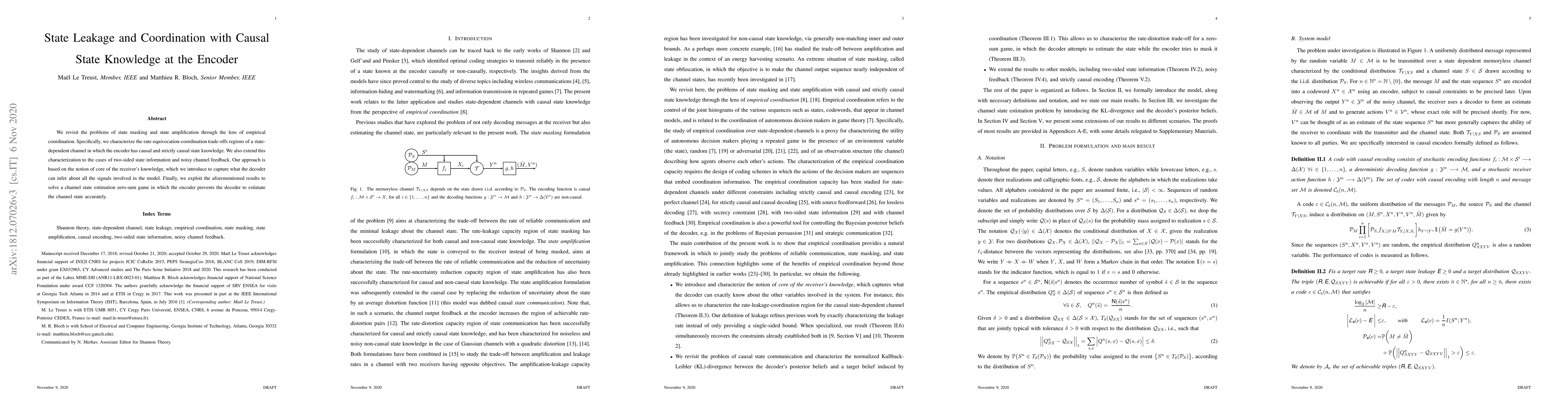 We revisit the problems of state masking and state amplification through the lens of empirical coordination. Specifically, we characterize the rate-equivocation-coordination trade-offs regions of a state-dependent channel in which the encoder has causal and strictly causal state knowledge. We also extend this characterization to the cases of two-sided state information and noisy channel feedback. Our approach is based on the notion of core of the receiver's knowledge, which we introduce to capture what the decoder can infer about all the signals involved in the model. Finally, we exploit the aforementioned results to solve a channel state estimation zero-sum game in which the encoder prevents the decoder to estimate the channel state accurately.