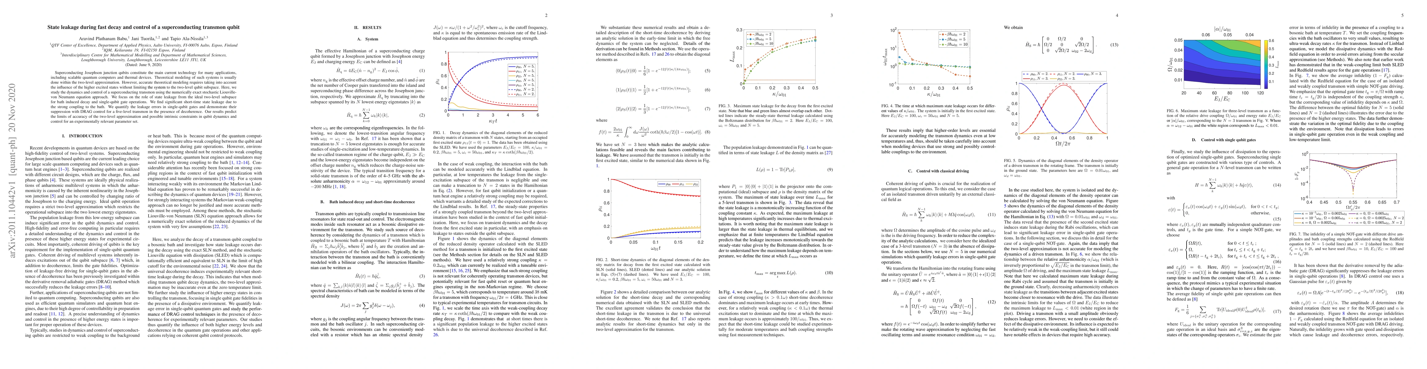 This paper investigates the dynamics and control of a superconducting transmon qubit, highlighting the impact of state leakage from the ideal two-level subspace during fast decay and gate operations. It demonstrates significant short-time leakage errors and proposes DRAG control to suppress these errors, predicting the limitations of the two-level approximation in qubit dynamics.