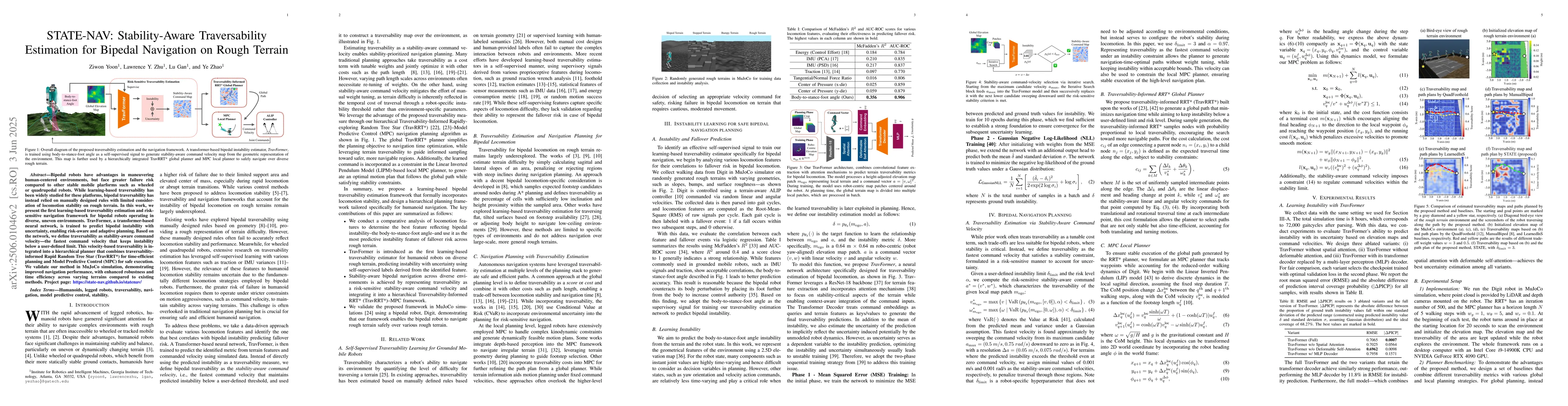 This work is significant as it addresses the challenge of bipedal robot navigation on rough terrain, which is crucial for human-centered environments. It introduces a stability-aware approach that could enhance the reliability and efficiency of bipedal robots in real-world applications.