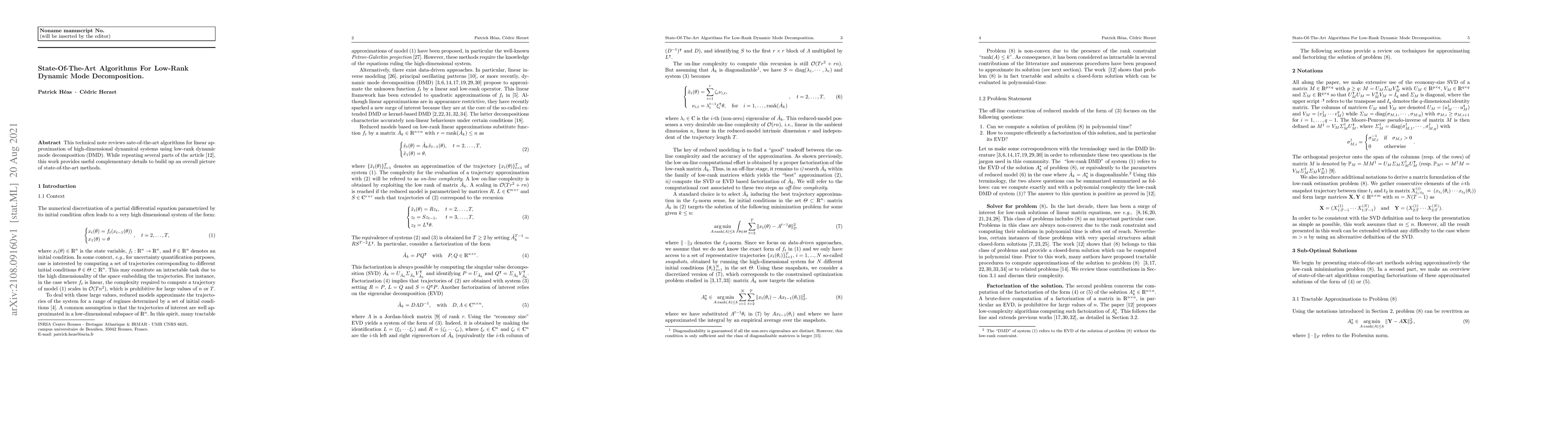 This technical note reviews sate-of-the-art algorithms for linear approximation of high-dimensional dynamical systems using low-rank dynamic mode decomposition (DMD). While repeating several parts of our article "low-rank dynamic mode decomposition: an exact and tractable solution", this work provides additional details useful for building a comprehensive picture of state-of-the-art methods.