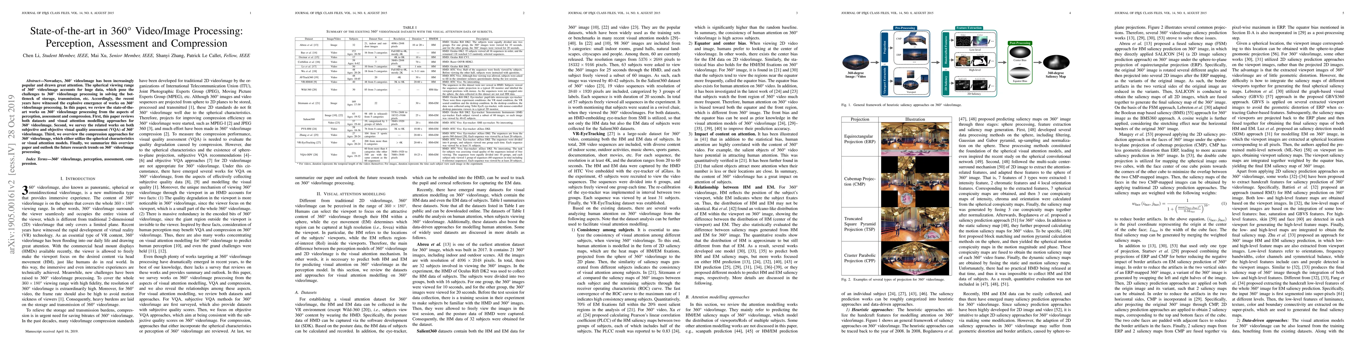 This paper reviews state-of-the-art methods in 360° video/image processing, focusing on perception, assessment, and compression. It surveys visual attention models, quality assessment techniques, and compression strategies, highlighting the challenges and future research trends in this rapidly evolving field.