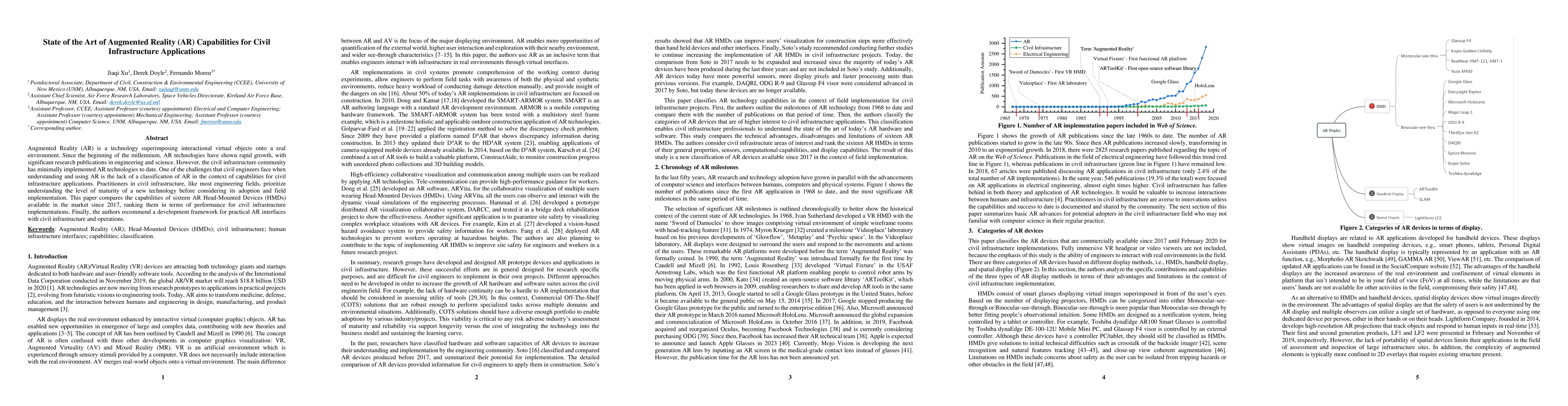 This paper evaluates 16 AR head-mounted devices for civil infrastructure applications, ranking them in terms of performance and recommending a framework for practical AR interfaces. It aims to bridge the gap between existing AR technologies and their adoption in the civil engineering field.