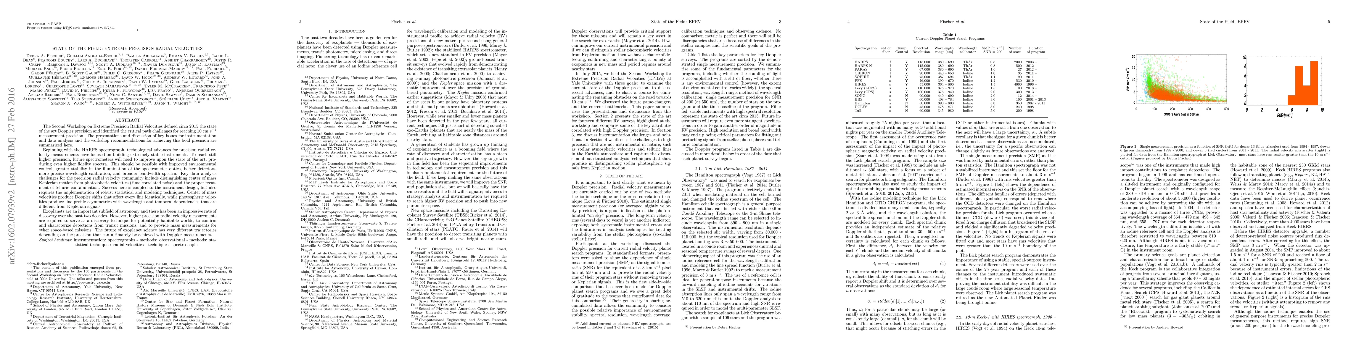 This paper summarizes the Second Workshop on Extreme Precision Radial Velocities, highlighting the current state of Doppler precision and the challenges in achieving 10 cm/s measurement precision. It emphasizes the need for advanced instrumentation and robust data analysis techniques to distinguish exoplanet signals from photospheric noise and telluric contamination.