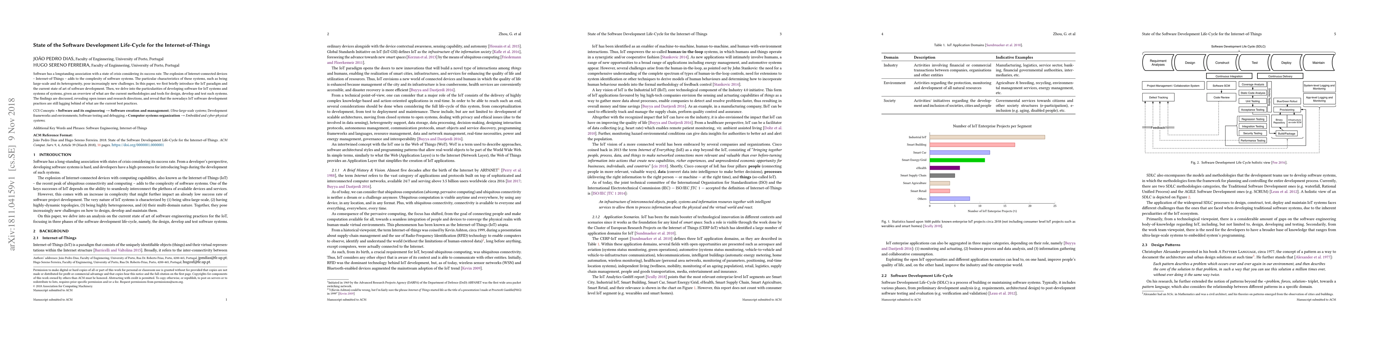 Software has a longstanding association with a state of crisis considering its success rate. The explosion of Internet-connected devices, Internet-of-Things, adds to the complexity of software systems. The particular characteristics of these systems, such as being large-scale and its heterogeneity, pose increasingly new challenges. In this paper, we first briefly introduce the IoT paradigm and the current state of art of software development. Then, we delve into the particularities of developing software for IoT systems and systems of systems, given an overview of what are the current methodologies and tools for design, develop and test such systems. The findings are discussed, revealing open issues and research directions, and reveal that the nowadays IoT software development practices are still lagging behind of what are the current best practices.