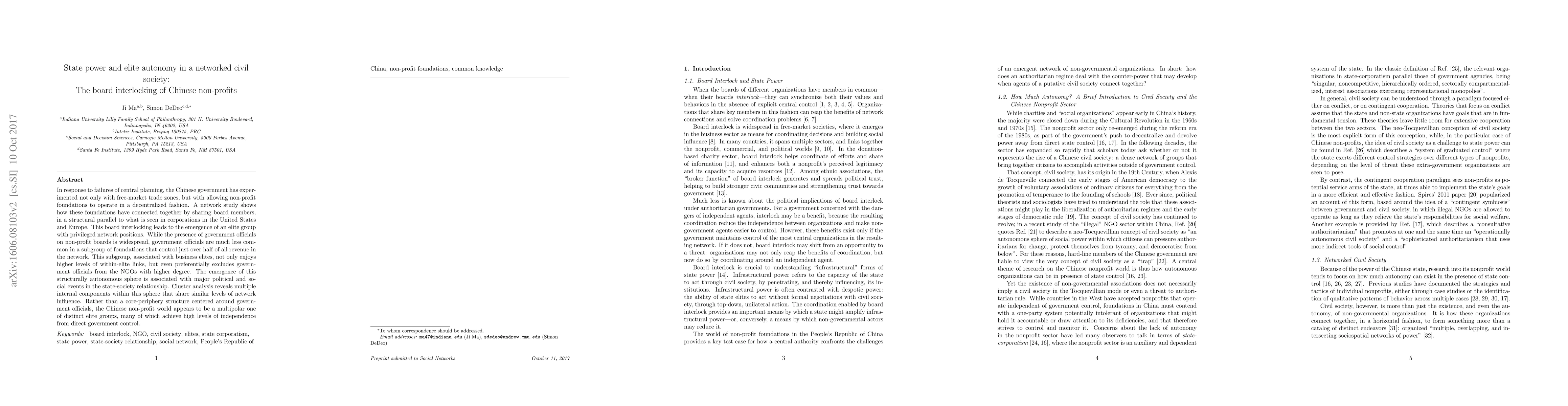 In response to failures of central planning, the Chinese government has experimented not only with free-market trade zones, but with allowing non-profit foundations to operate in a decentralized fashion. A network study shows how these foundations have connected together by sharing board members, in a structural parallel to what is seen in corporations in the United States and Europe. This board interlocking leads to the emergence of an elite group with privileged network positions. While the presence of government officials on non-profit boards is widespread, government officials are much less common in a subgroup of foundations that control just over half of all revenue in the network. This subgroup, associated with business elites, not only enjoys higher levels of within-elite links, but even preferentially excludes government officials from the NGOs with higher degree. The emergence of this structurally autonomous sphere is associated with major political and social events in the state-society relationship. Cluster analysis reveals multiple internal components within this sphere that share similar levels of network influence. Rather than a core-periphery structure centered around government officials, the Chinese non-profit world appears to be a multipolar one of distinct elite groups, many of which achieve high levels of independence from direct government control.