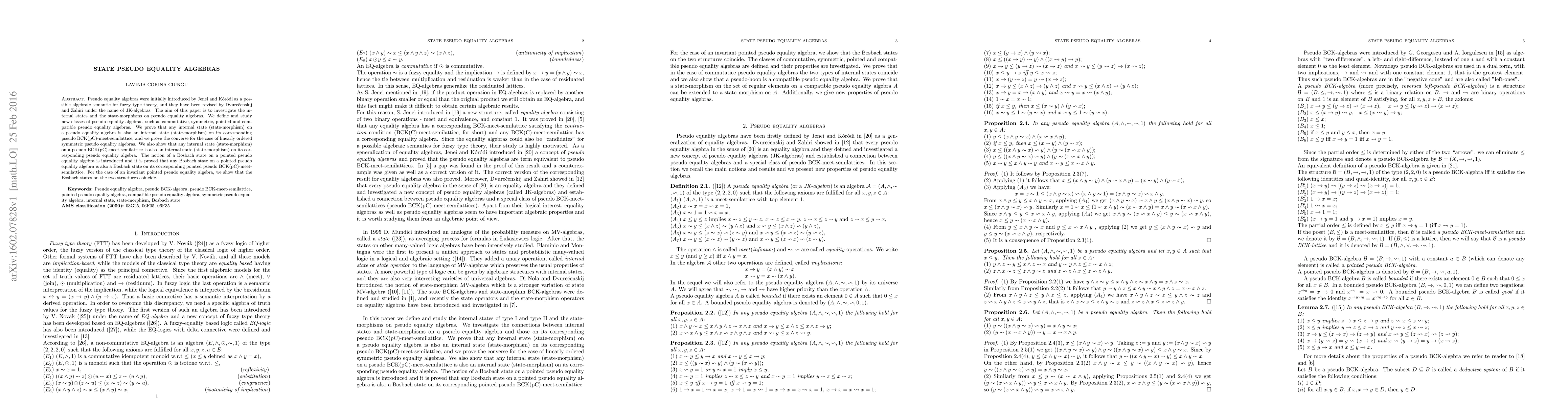 Pseudo equality algebras were initially introduced by Jenei and $\rm K\acute{o}r\acute{o}di$ as a possible algebraic semantic for fuzzy type theory, and they have been revised by Dvure\v censkij and Zahiri under the name of JK-algebras. The aim of this paper is to investigate the internal states and the state-morphisms on pseudo equality algebras. We define and study new classes of pseudo equality algebras, such as commutative, symmetric, pointed and compatible pseudo equality algebras. We prove that any internal state (state-morphism) on a pseudo equality algebra is also an internal state (state-morphism) on its corresponding pseudo BCK(pC)-meet-semilattice, and we prove the converse for the case of linearly ordered symmetric pseudo equality algebras. We also show that any internal state (state-morphism) on a pseudo BCK(pC)-meet-semilattice is also an internal state (state-morphism) on its corresponding pseudo equality algebra. The notion of a Bosbach state on a pointed pseudo equality algebra is introduced and proved that any Bosbach state on a pointed pseudo equality algebra is also a Bosbach state on its corresponding pointed pseudo BCK(pC)-meet-semilattice. For the case of an invariant pointed pseudo equality algebra, we show that the Bosbach states on the two structures coincide.