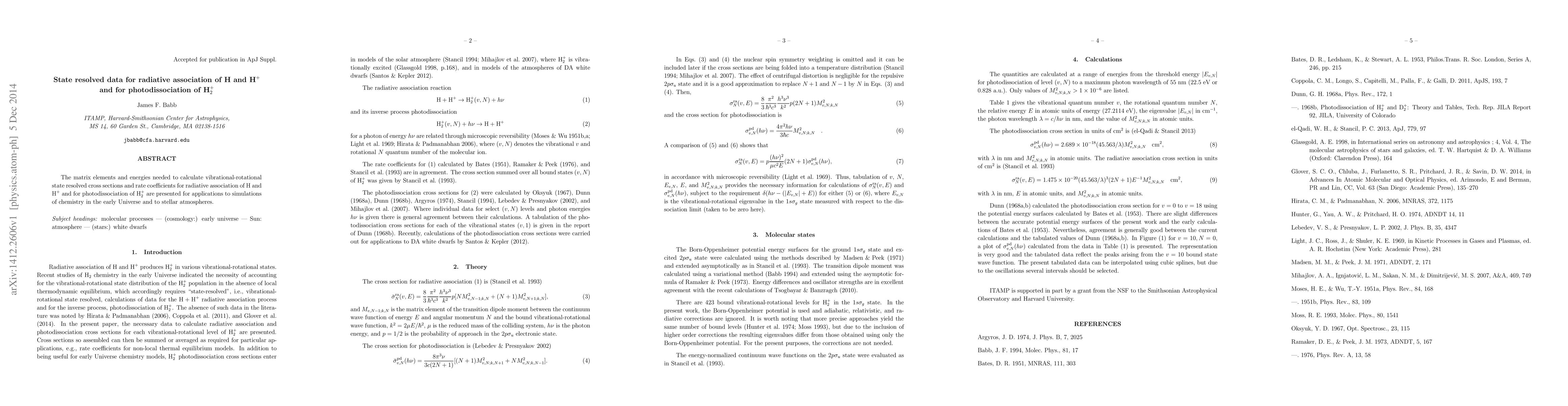 The matrix elements and energies needed to calculate vibrational-rotational state resolved cross sections and rate coefficients for radiative association of H and p and for photodissociation of H${}_2^+$ are presented for applications to simulations of chemistry in the early Universe and to stellar atmospheres.