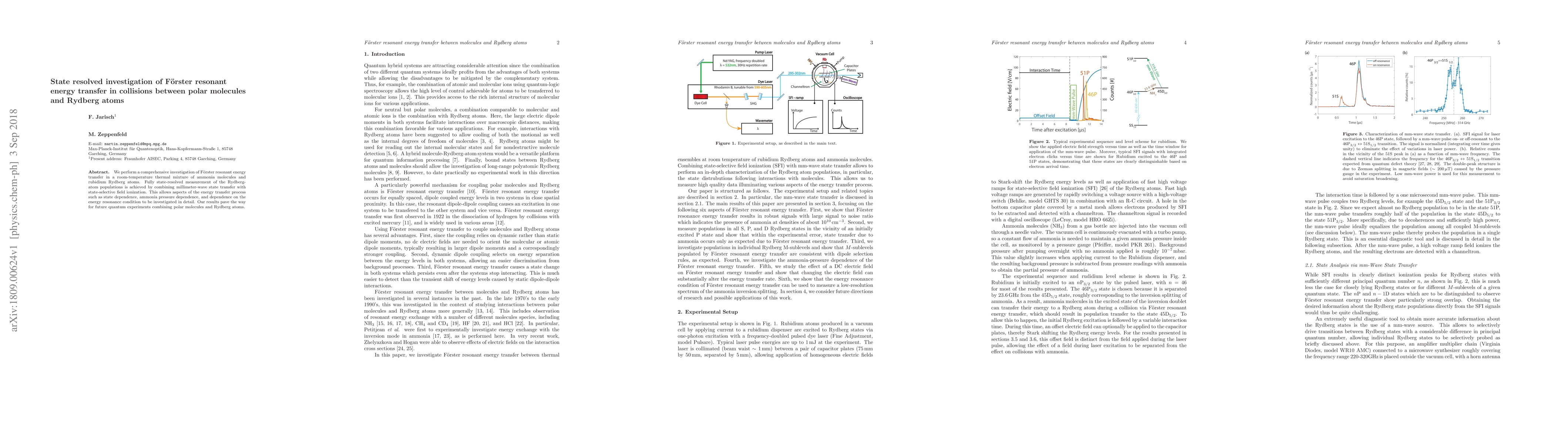 This study investigates F\"orster resonant energy transfer between ammonia molecules and rubidium Rydberg atoms at room temperature, employing state-resolved measurements to analyze the process's state dependence and pressure dependence. The findings provide insights for future quantum experiments involving polar molecules and Rydberg atoms.