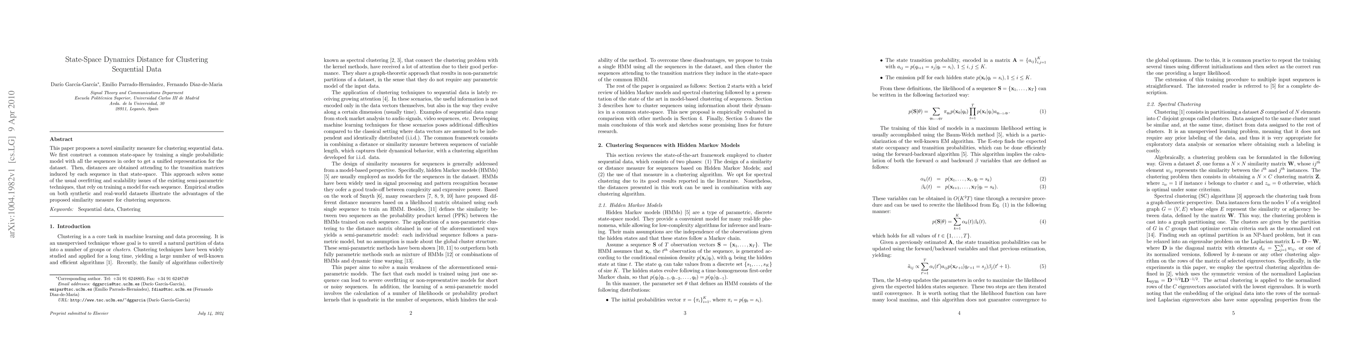 A new similarity measure for clustering sequential data is proposed, using a unified state-space representation to solve overfitting and scalability issues. This approach outperforms existing semi-parametric techniques on synthetic and real-world datasets.