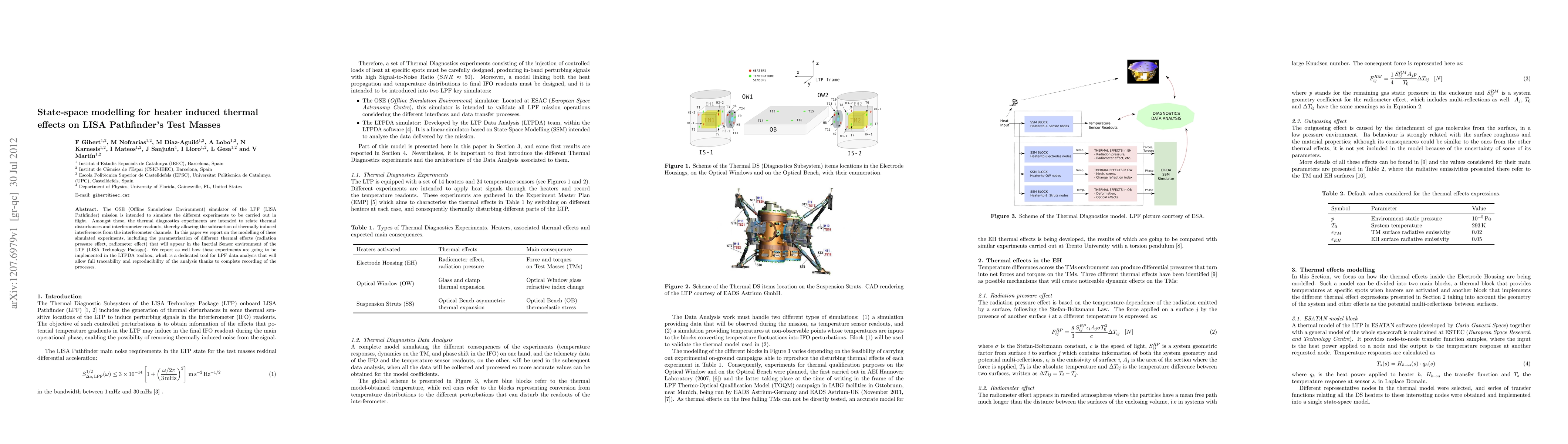 This paper models thermal effects on LISA Pathfinder's test masses using state-space modelling within the OSE simulator, focusing on radiation pressure and radiometer effects. It also details the implementation of these models in the LTPDA toolbox for reproducible data analysis.