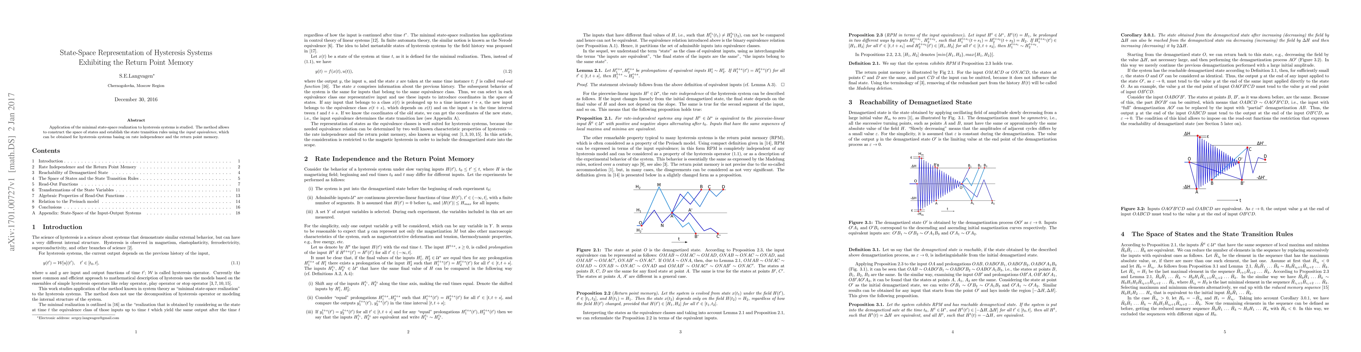 This paper explores the minimal state-space representation for hysteresis systems, focusing on those that exhibit return point memory. It constructs the state space and establishes transition rules, leveraging input equivalence derived from rate independence.