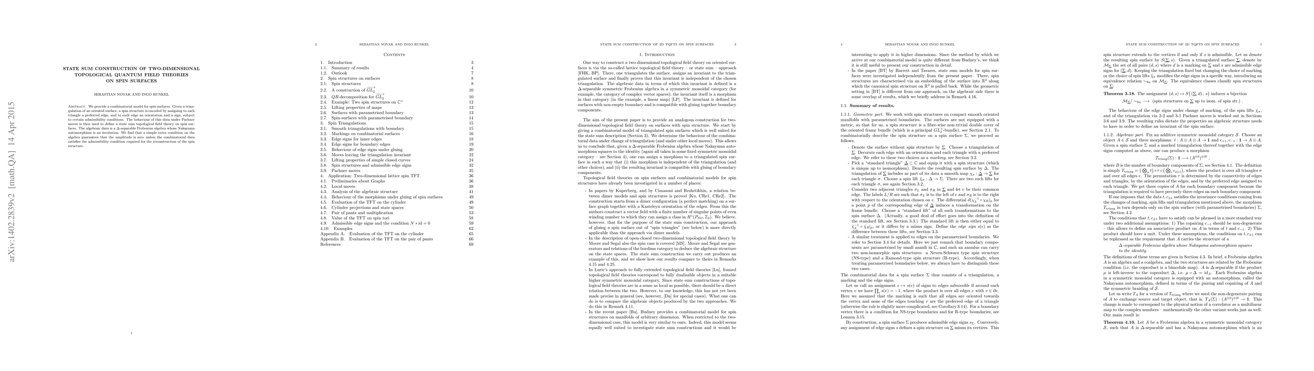 Researchers develop a combinatorial model for spin surfaces that leads to a state sum topological field theory on spin surfaces, finding an additional condition that guarantees zero amplitude unless the data satisfies admissibility conditions.