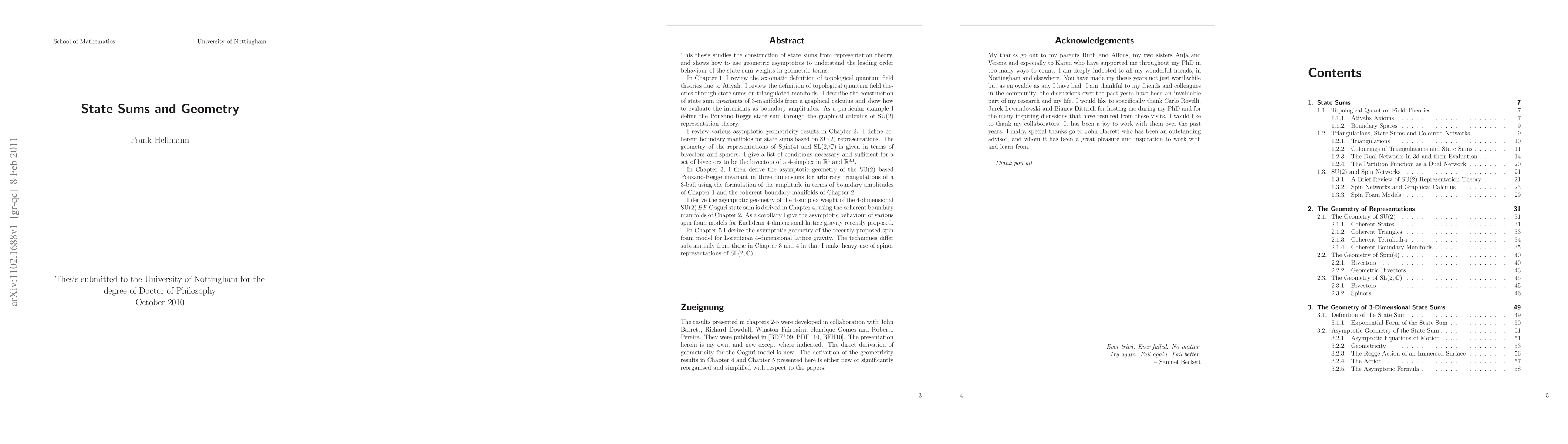 In this thesis I review the definition of topological quantum field theories through state sums on triangulated manifolds. I describe the construction of state sum invariants of 3-manifolds from a graphical calculus and show how to evaluate the invariants as boundary amplitudes. I review how to define such a graphical calculus through SU(2) representation theory. I then review various geometricity results for the representation theory of SU(2), Spin(4) and SL(2,C), and define coherent boundary manifolds for state sums based on these representations. I derive the asymptotic geometry of the SU(2) based Ponzano-Regge invariant in three dimensions, and the SU(2) based Ooguri models amplitude in four dimensions. As a corollary to the latter results I derive the asymptotic behaviour of various recently proposed spin foam models motivated from the Plebanski formulation of general relativity. Finally the asymptotic geometry of the SL(2,C) based model is derived.