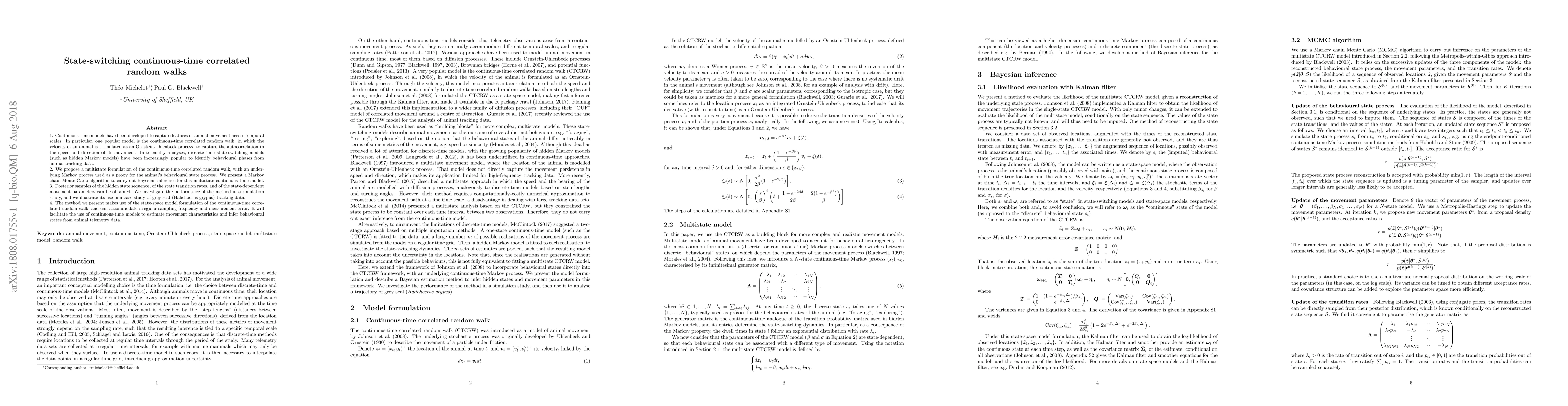 The paper proposes a multistate formulation of continuous-time correlated random walks (CTCRW) using a Markov process to represent behavioral states. A Markov chain Monte Carlo algorithm is presented for Bayesian inference of the model, providing posterior samples for hidden state sequences, transition rates, and state-dependent movement parameters.